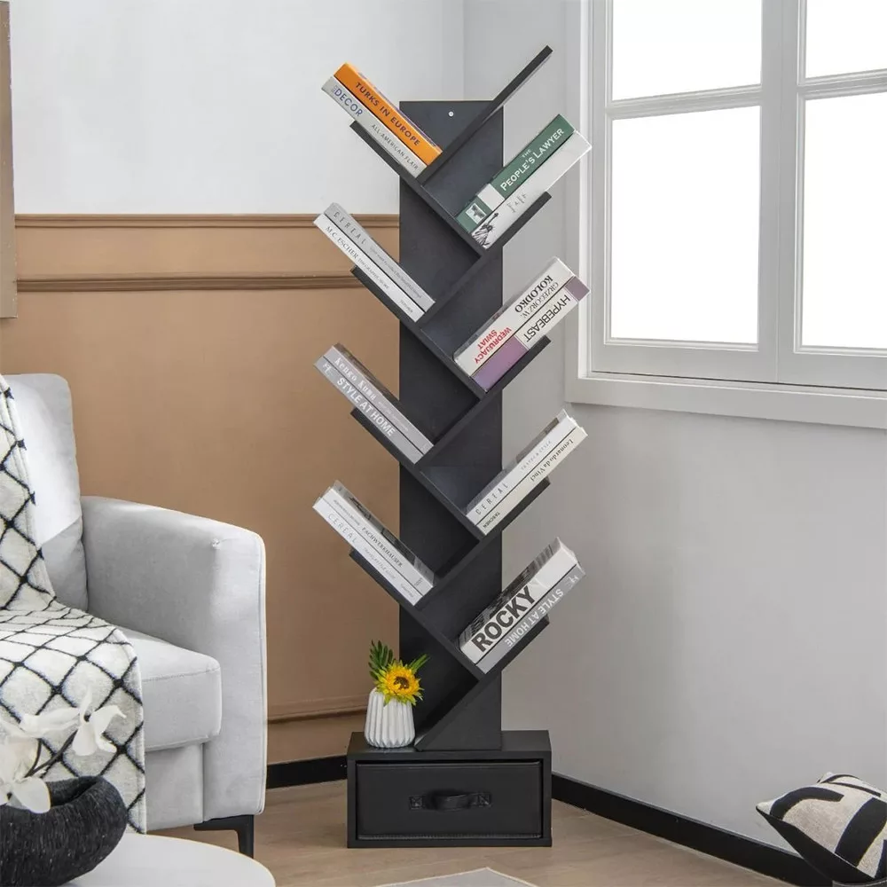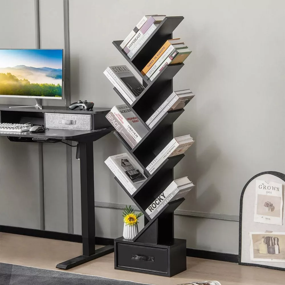 Wykonana z trwałych materiałów, konstrukcja ma wysoką nośność, a każda półka może pomieścić kilka książek bez problemów. Trójkątna podstawa zapewnia solidną stabilność, a zestaw do montażu na ścianie zapobiega przewróceniu – szczególnie przydatne w domach z małymi dziećmi.