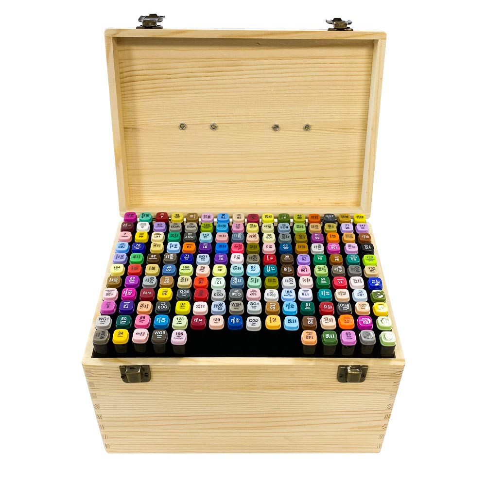 Zestaw zapakowany jest w elegancką, malowaną drewnianą skrzynkę, która nie tylko chroni markery, ale także może zostać ozdobiona według własnego pomysłu, nadając jej osobisty charakter. Solidna konstrukcja sprawia, że to doskonały pomysł na prezent dla miłośników sztuki.