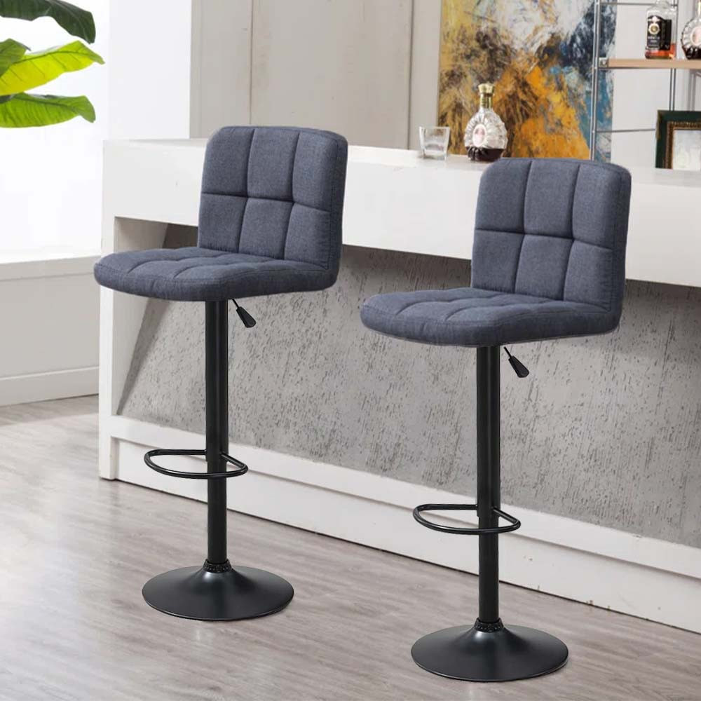 2 krzesła barowe z siedziskiem z tkaniny w kilku kolorach, ciemny szary