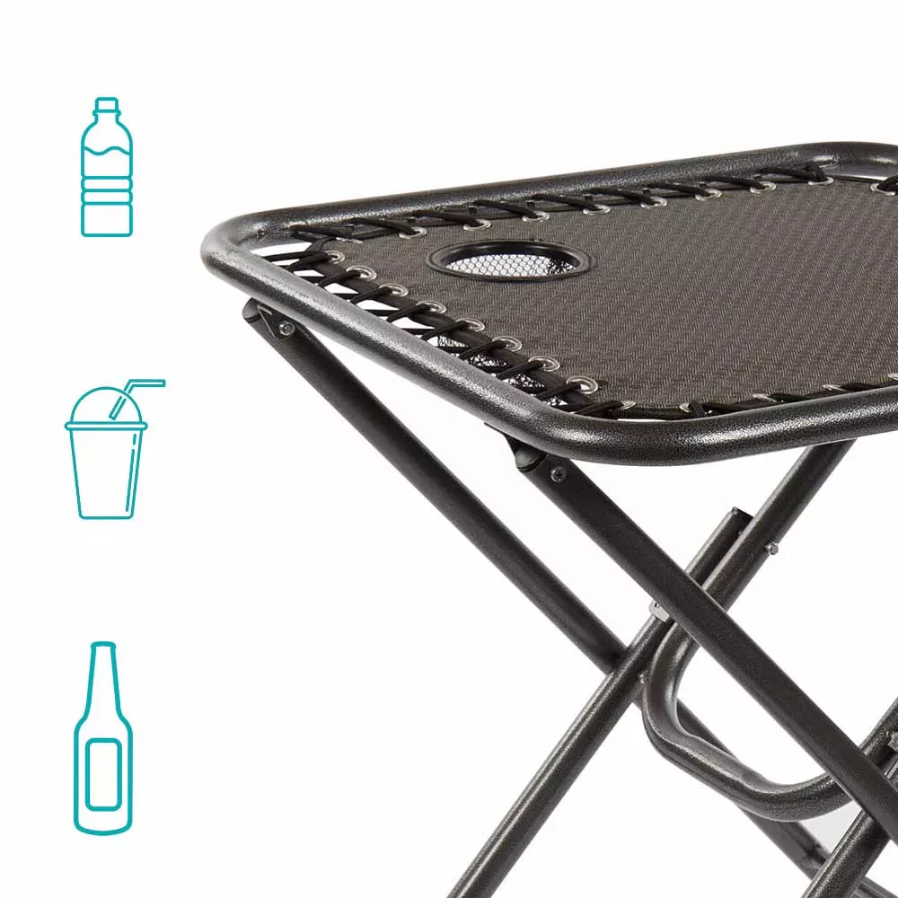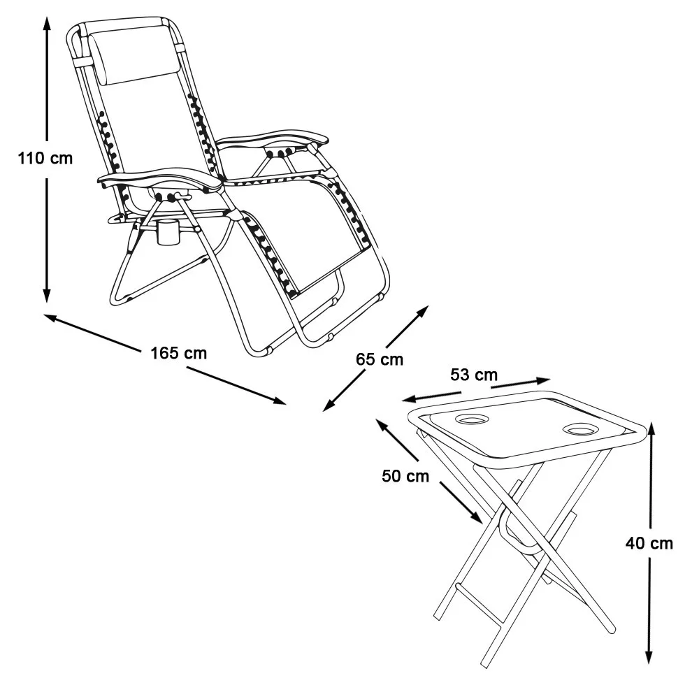 W skład zestawu wchodzi również lekki, a zarazem stabilny stolik, na którym bez problemu zmieszczą się napoje, przekąski lub książka. To idealne uzupełnienie odpoczynku, dzięki któremu wszystko, czego potrzebujesz, masz zawsze pod ręką, bez konieczności wstawania.