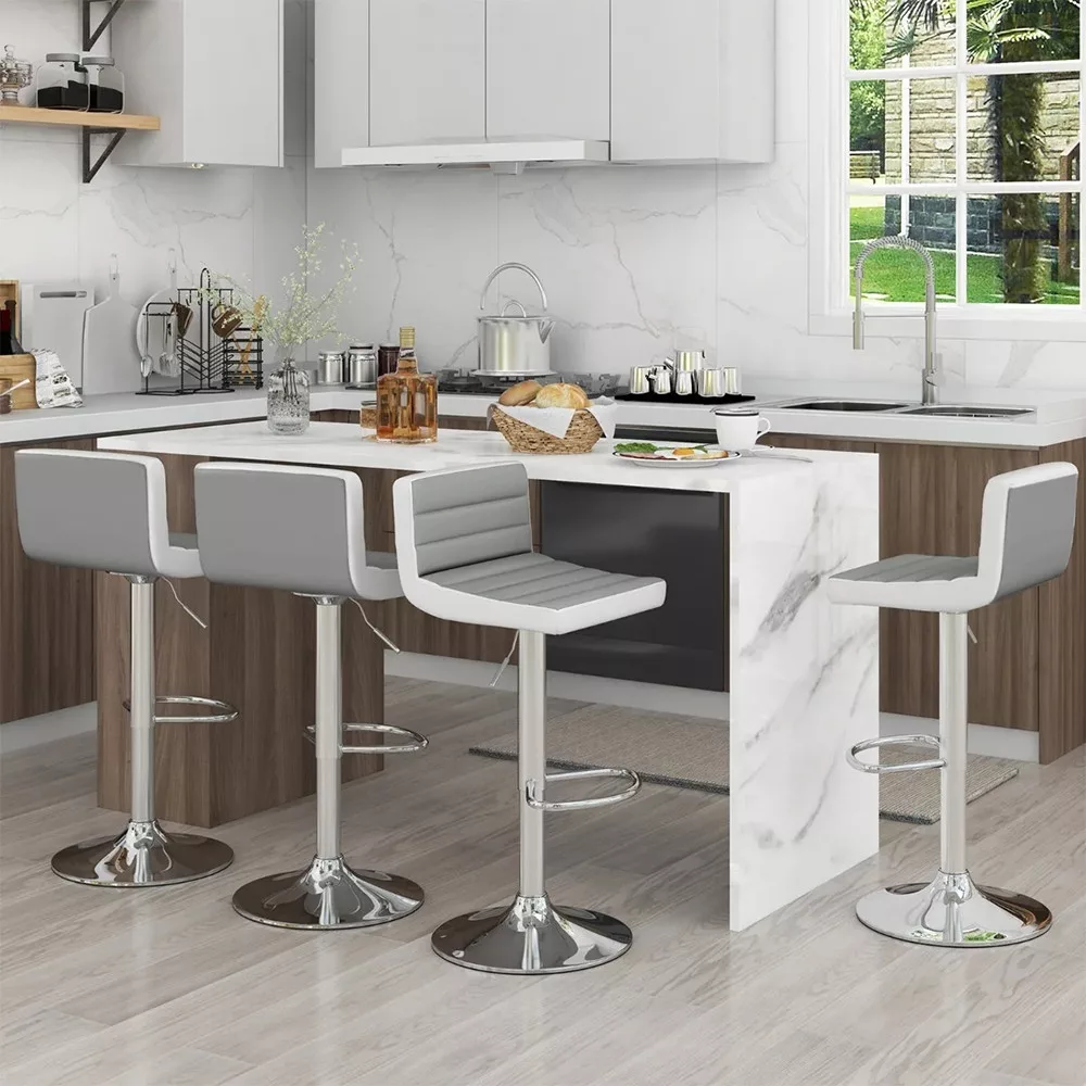 Wyściełane oparcie i ergonomiczne siedzisko zapewniają przyjemne wsparcie, dzięki czemu stołki barowe są wygodne nawet podczas dłuższego użytkowania.