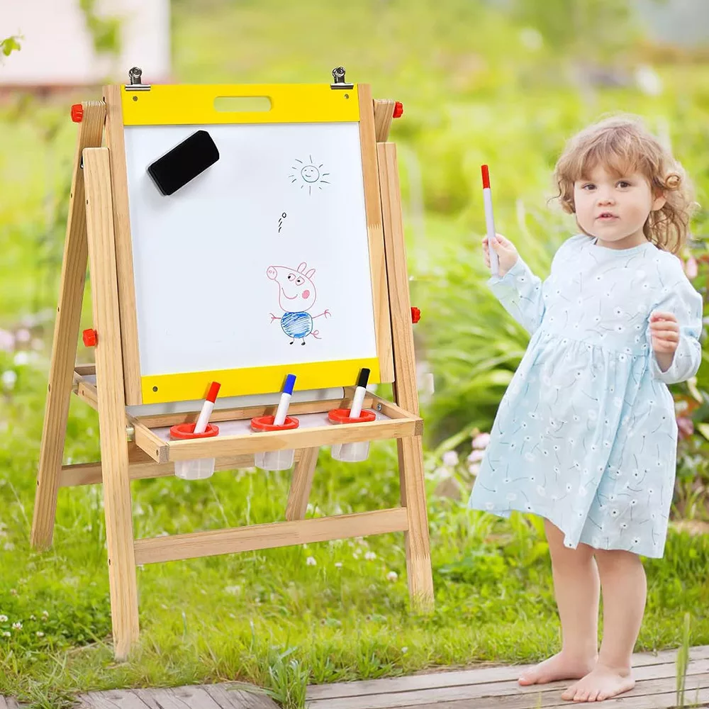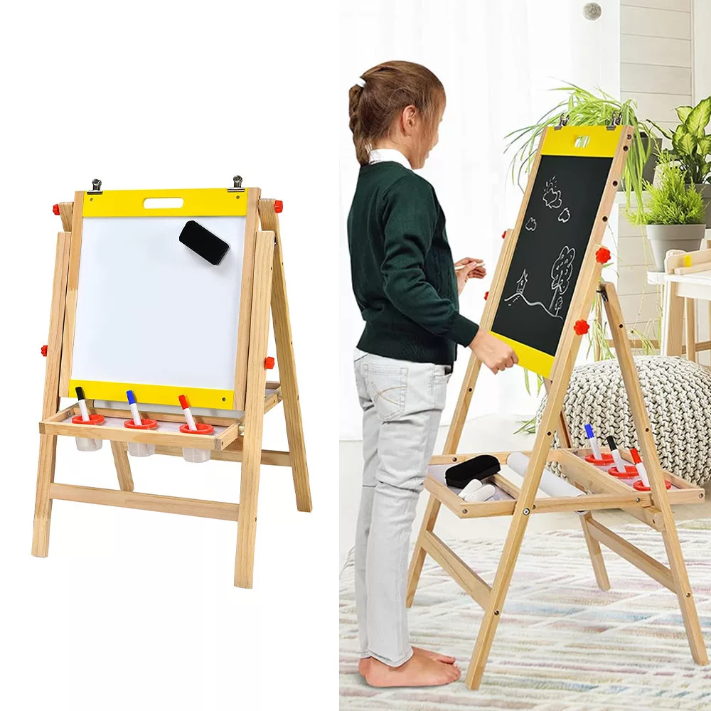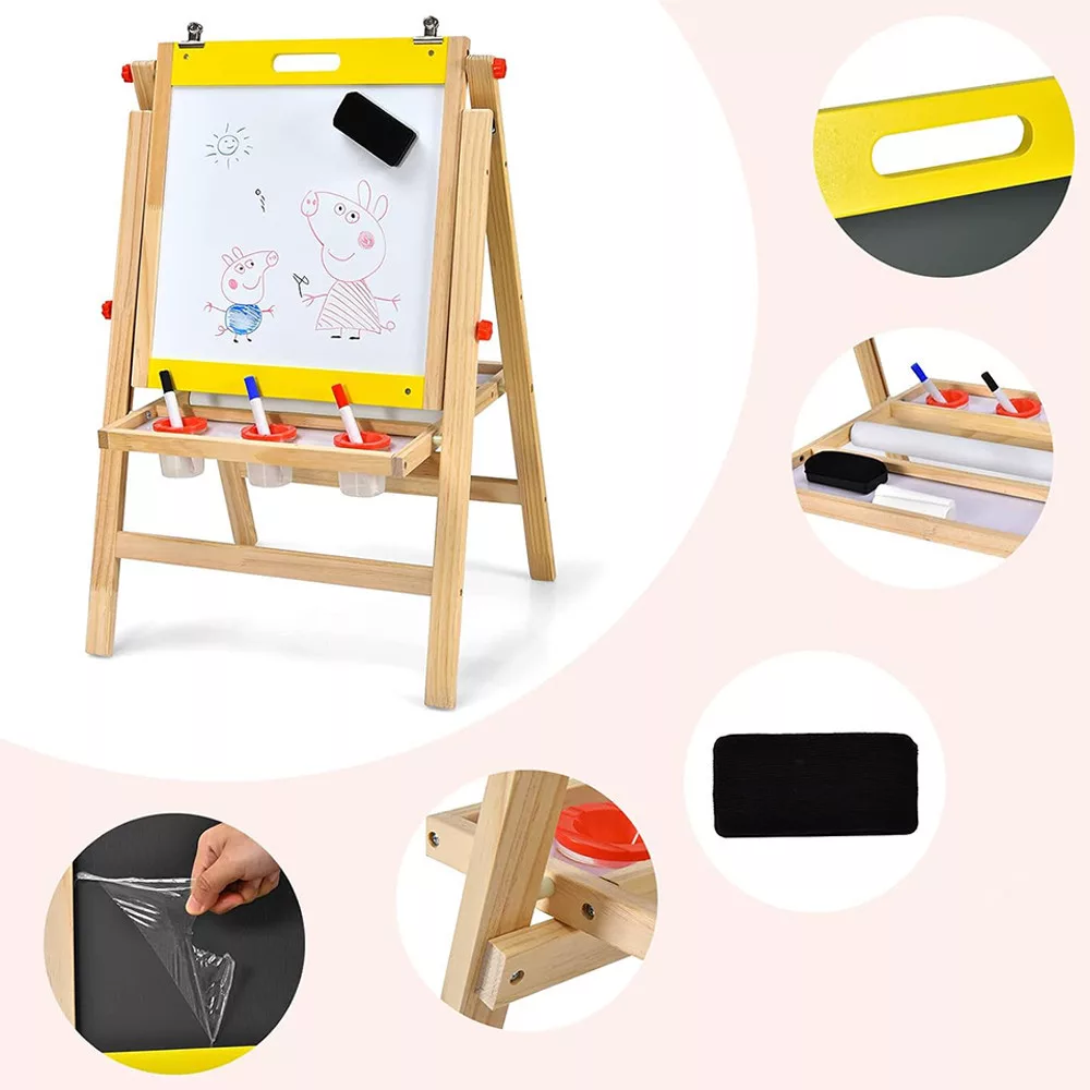 W zestawie znajduje się tablica suchościeralna, tablica kredowa oraz rolka papieru. Dzieci mogą swobodnie rysować na powierzchni tablicy kredowej, podczas gdy biała tablica magnetyczna wytwarza mniej kurzu i może być również używana do gier magnetycznych. Dołączona rolka papieru oferuje dodatkowe możliwości rysunkowe dla dzieci.