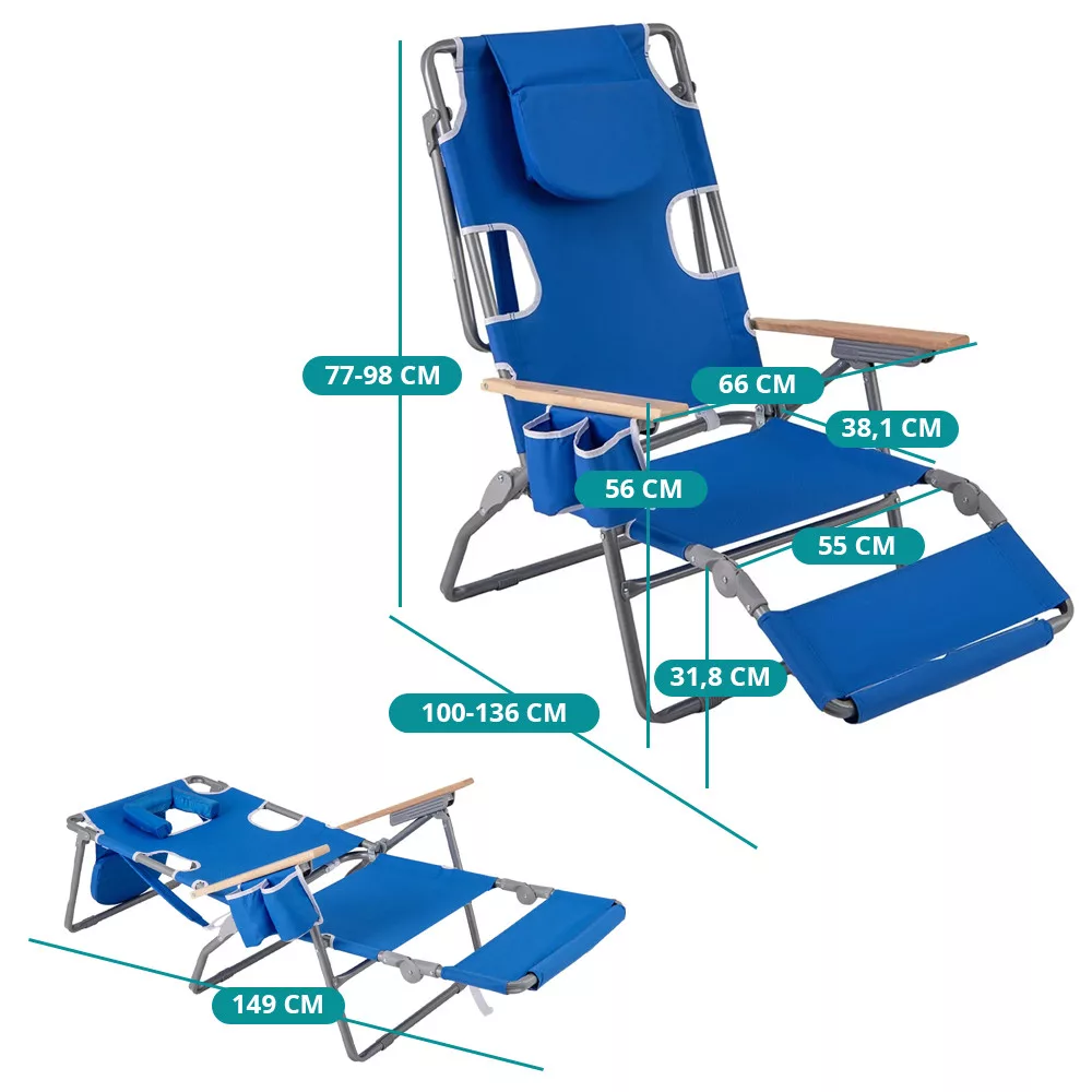 Jeśli szukasz wygodnego miejsca do siedzenia i leżenia na plażę, kemping lub taras, to krzesło będzie dobrym towarzyszem. Możesz na nim siedzieć podczas rozmów, pochylić się na krótką drzemkę lub całkowicie się wyciągnąć, by się opalać.