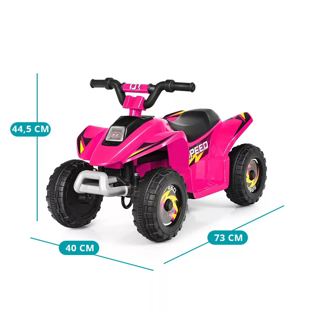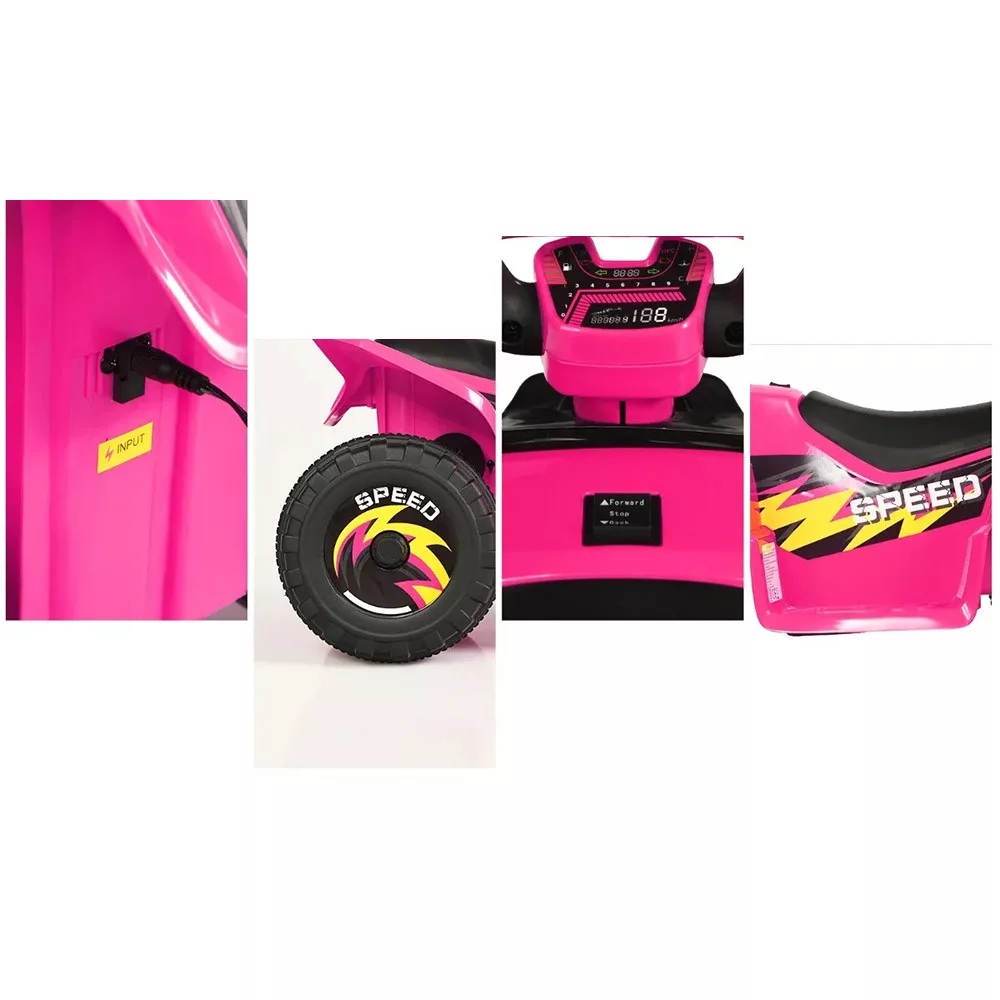Ten elektryczny quad zaprojektowany dla dzieci oferuje ekscytującą i bezpieczną zabawę. Dzięki prostemu przełącznikowi do jazdy do przodu i do tyłu oraz kierowaniu, dzieci szybko uczą się podstaw prowadzenia, podczas gdy pojazd porusza się z prędkością do 4,6 km/h.