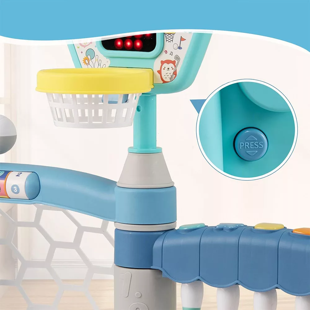 Wbudowane oświetlenie, elementy muzyczne i wesołe efekty dźwiękowe sprawiają, że czas zabawy jest jeszcze przyjemniejszy, a funkcja liczenia punktów w koszykówce zwiększa poczucie osiągnięcia.