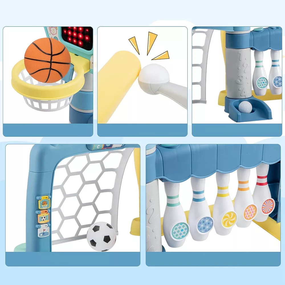 - Gra sportowa 5 w 1: koszykówka, piłka nożna, kręgle, golf, baseball
