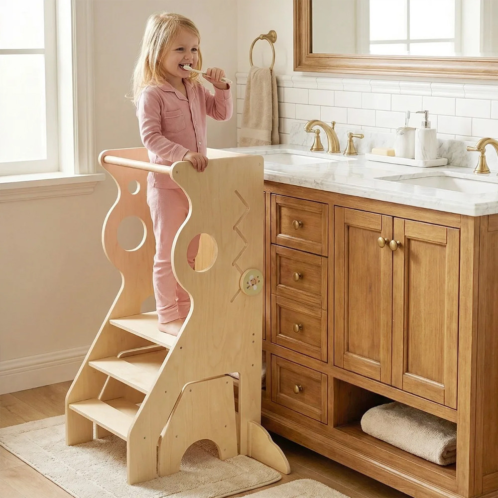 Jeśli chcesz, aby dziecko stało przy tobie podczas mycia rąk, mycia zębów czy gotowania, ten podest jest bardzo pomocny. Zapewnia wysokość, dzięki której wygodnie sięgnie do umywalki lub blatu kuchennego, co ułatwia włączenie go w codzienną rutynę.