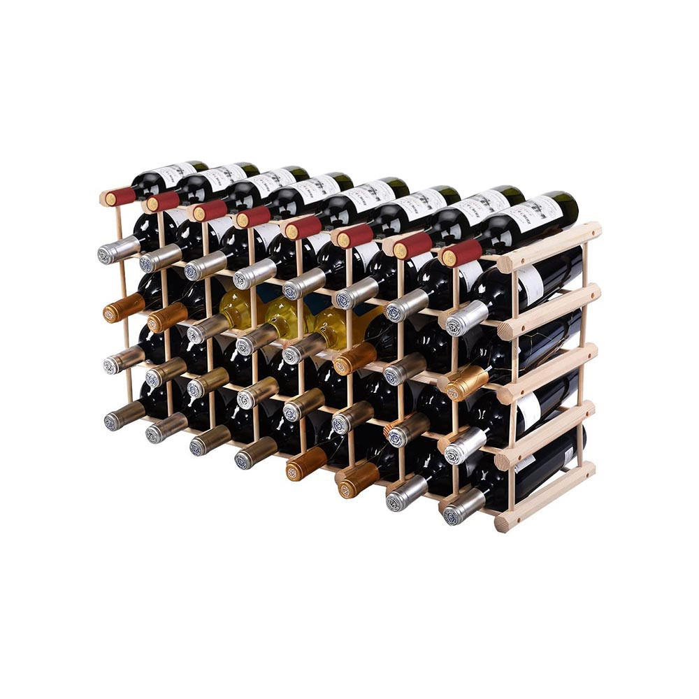 Surowe drewno sosnowe wnosi ciepły klimat i delikatny zapach, jednocześnie zapewniając stabilne podparcie dla butelek. Naturalny kolor drewna dobrze komponuje się z innymi meblami, zarówno w piwniczce na wino, jak i w rogu salonu.
