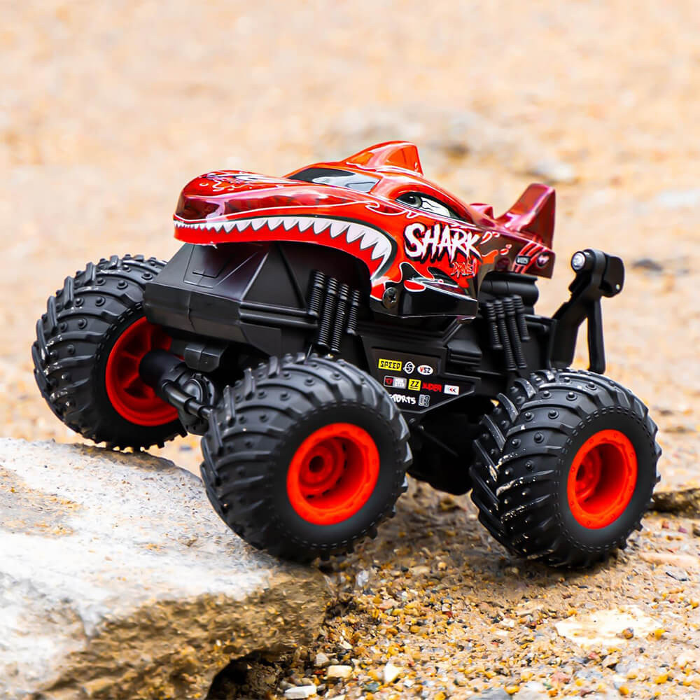 A cápa formatervezés nemcsak a gyerekek, hanem a felnőttek figyelmét is megragadja. A 35 méteres hatótávolság és a nagy fordulószögű drift kerekek lehetővé teszik, hogy az autó bármilyen terepen magabiztosan mozogjon, miközben a 30 perces játékidő hosszabb szórakozást biztosít.