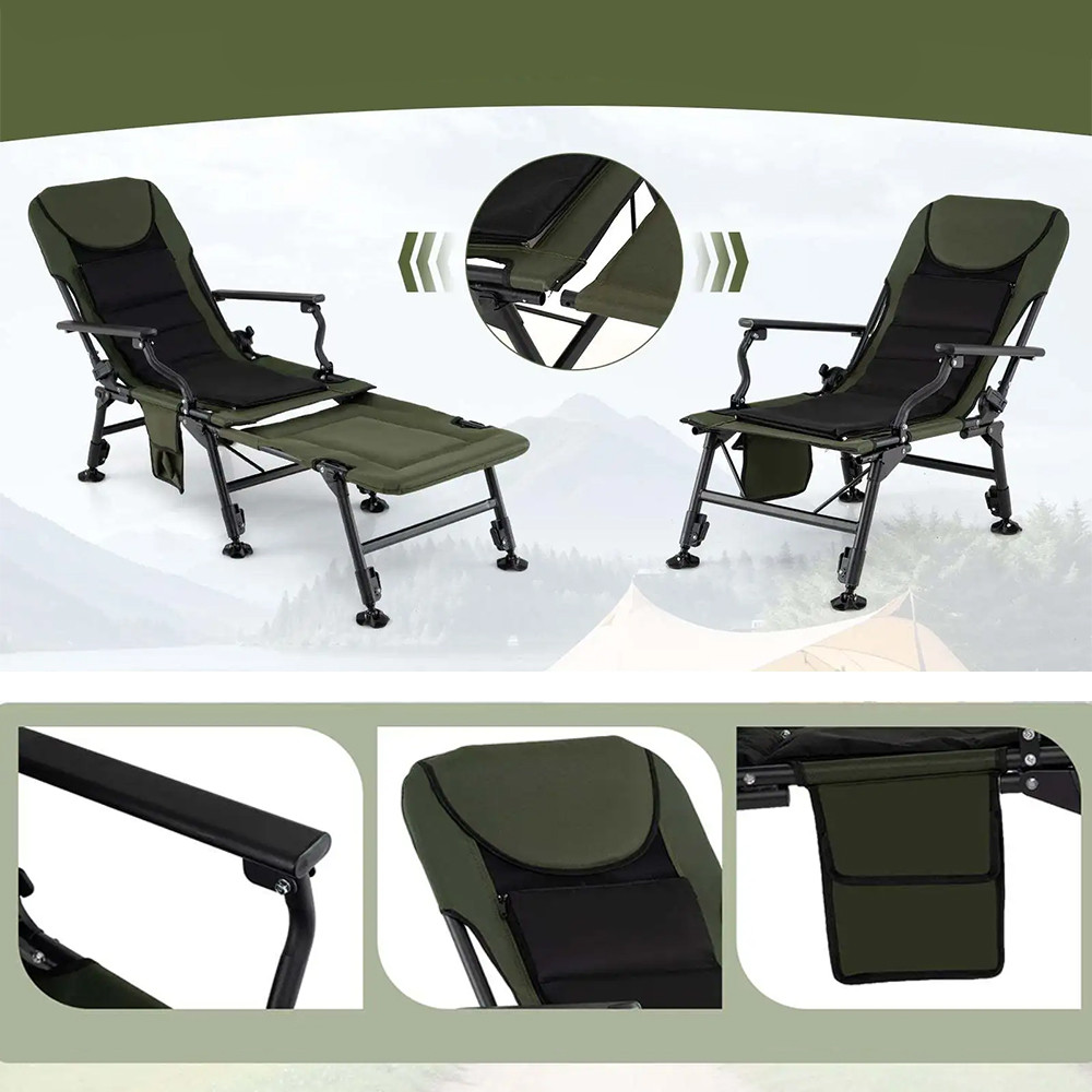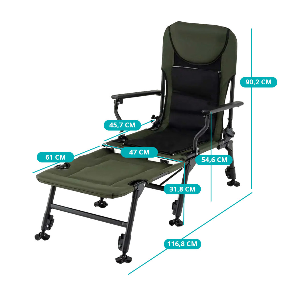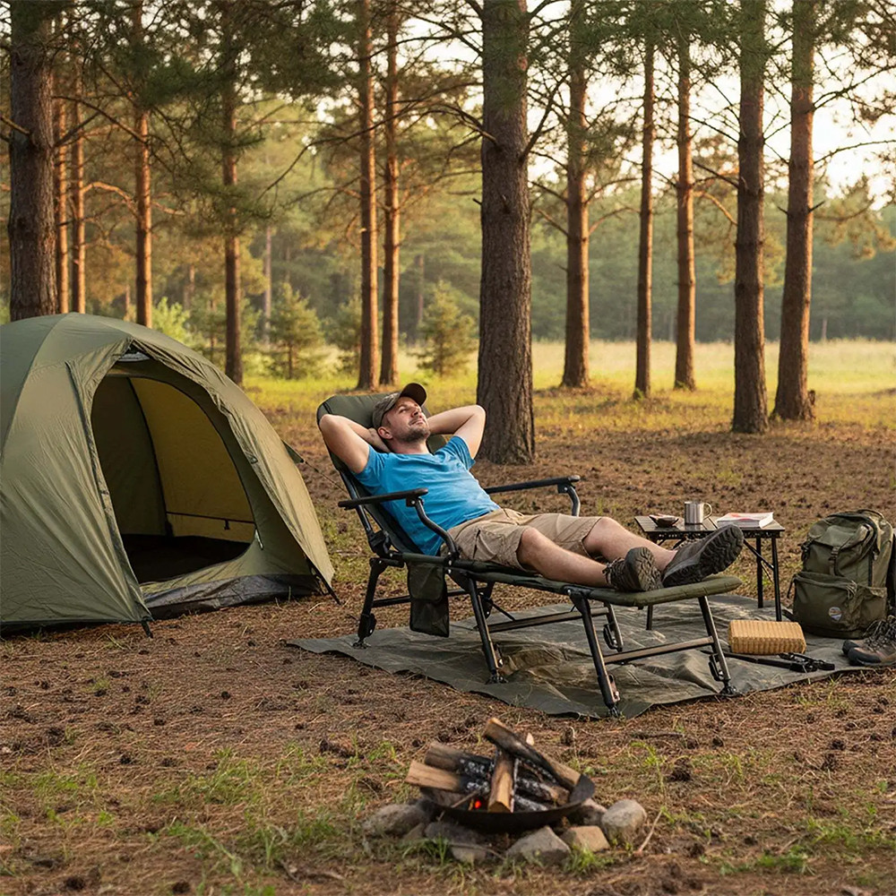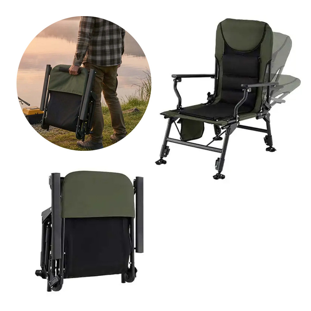 Składana budowa ułatwia przenoszenie i przechowywanie, dzięki czemu krzesło świetnie sprawdzi się podczas wędkowania, biwakowania, wycieczek oraz dłuższych aktywności na świeżym powietrzu.