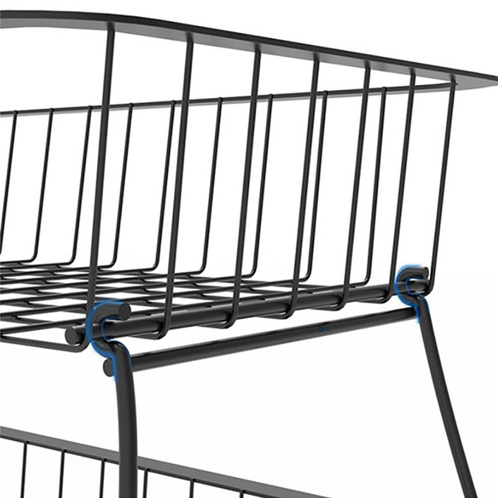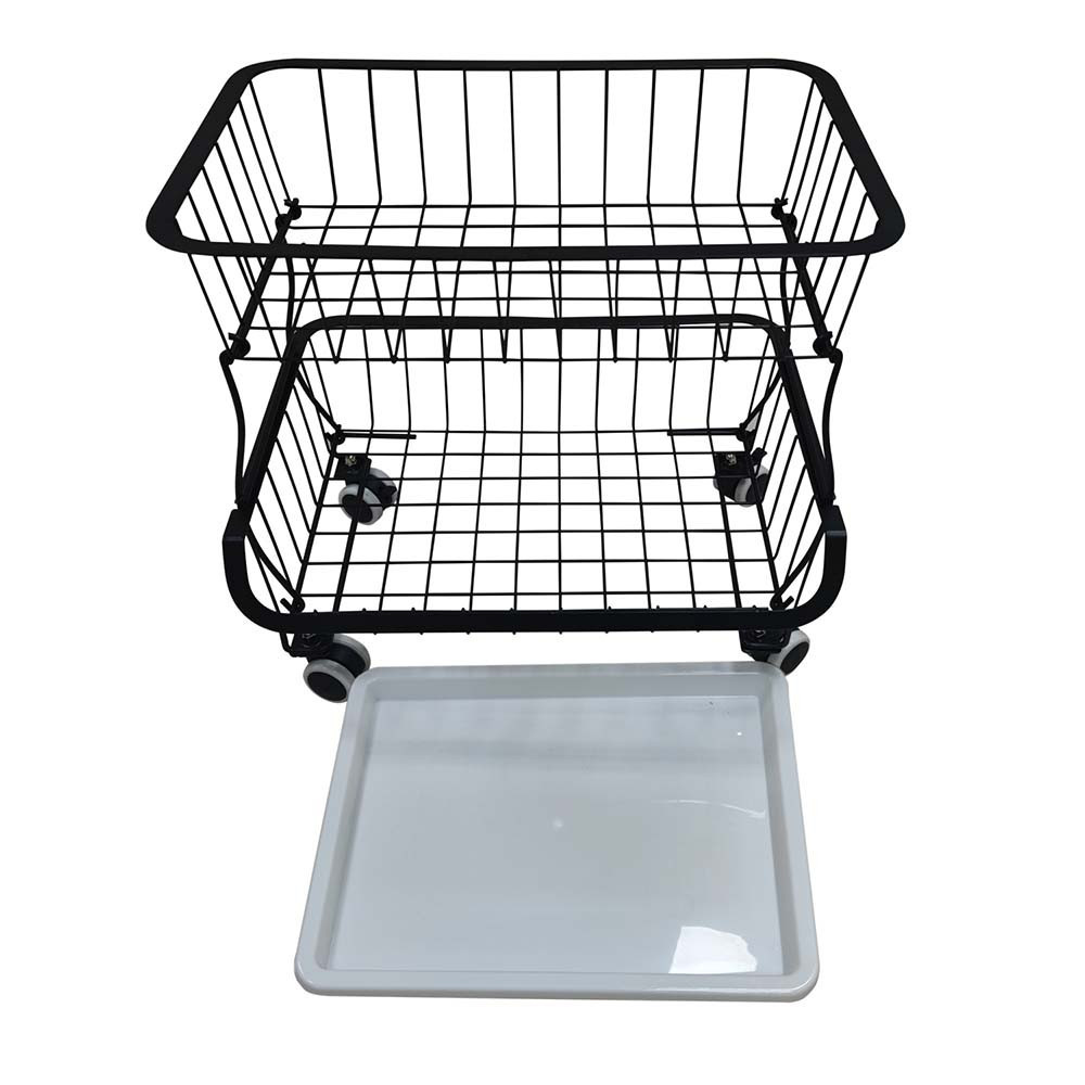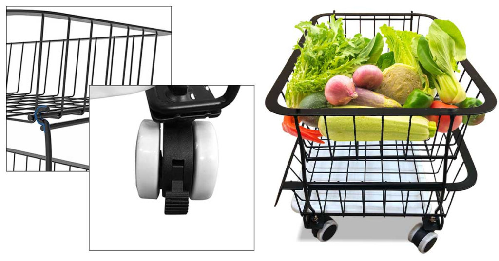 Dwupoziomowy schowek kuchenny może być bardzo pomocny w kuchni. Idealny do przechowywania naczyń, detergentów i przyborów kuchennych. Masz dwa kosze tego samego rozmiaru oraz dolną tacę, którą można wyjąć, dzięki czemu można ją łatwo przenosić i czyścić. Oprócz stałych nóżek zbiornik posiada również 4 kółka, które można zamontować, dzięki czemu bardzo łatwo jest zmienić jego pozycję i w razie potrzeby zabezpieczyć go hamulcami na kołach.