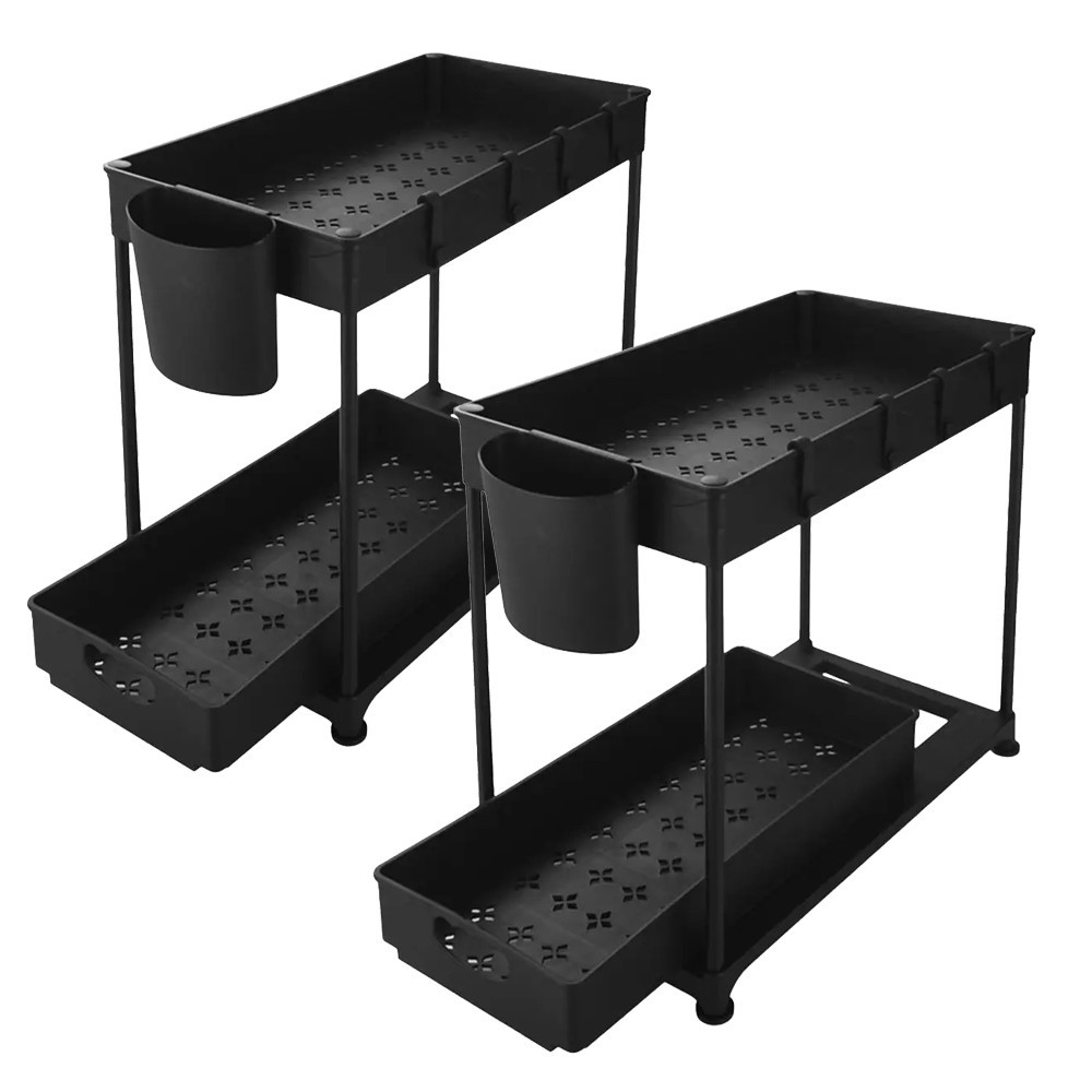 Dwupoziomowy organizer to doskonały wybór, gdy masz mało miejsca, ale wiele rzeczy do przechowania. Umieść go pod zlewem lub na półce – sprawdzi się świetnie do przechowywania naczyń, detergentów czy akcesoriów łazienkowych.