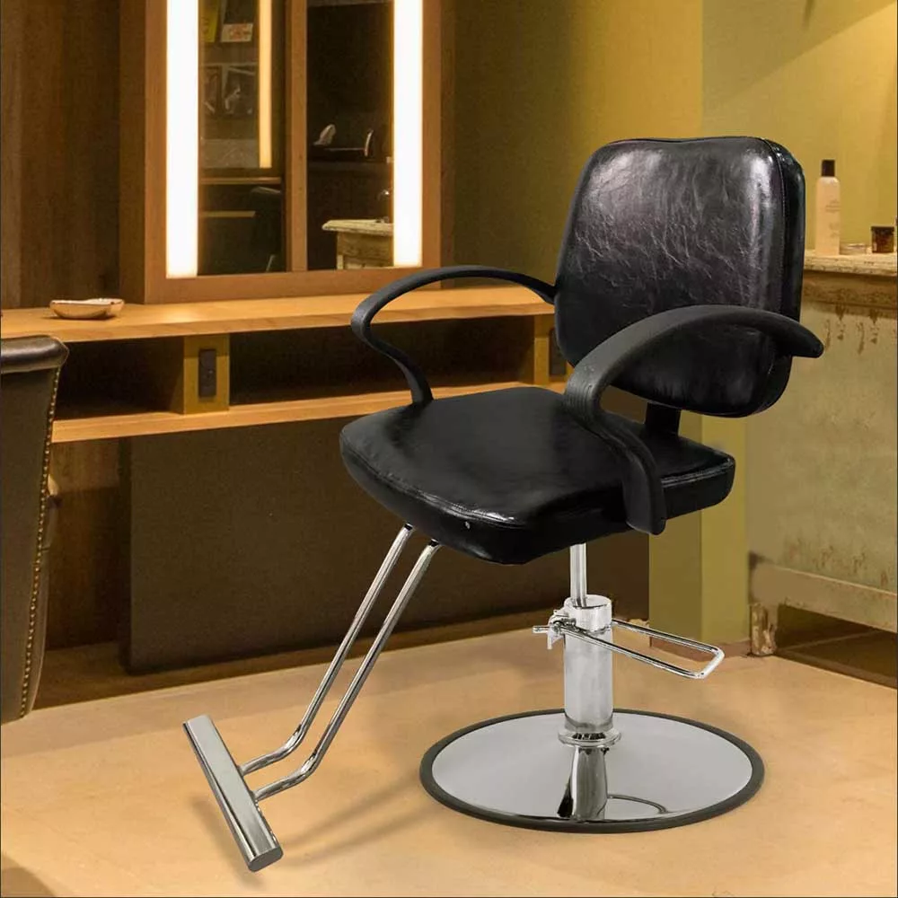 Nasz czarny fotel fryzjerski doskonale nadaje się do salonów fryzjerskich damskich i męskich. Jego syntetyczna skóra jest bardzo łatwa i szybka w czyszczeniu, a jej wysokość można regulować stopą. Wygodę gości zapewnia podnóżek, nośność krzesła to 100 kilogramów.