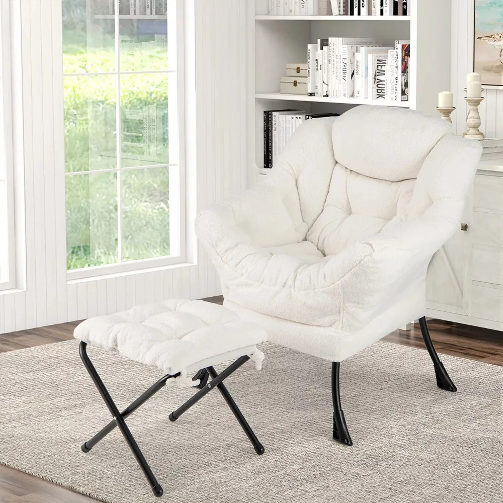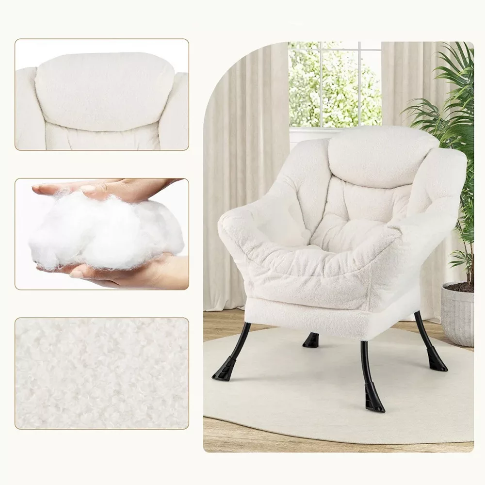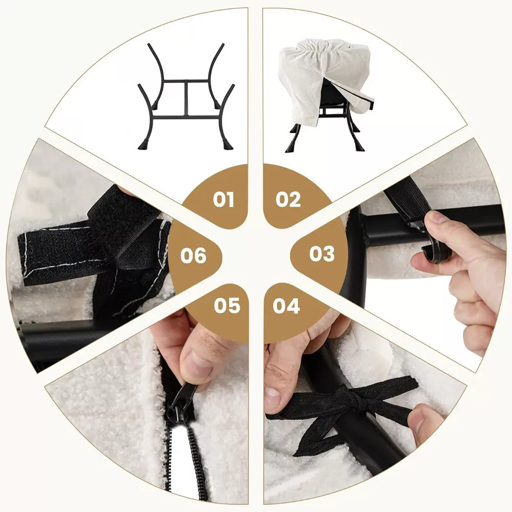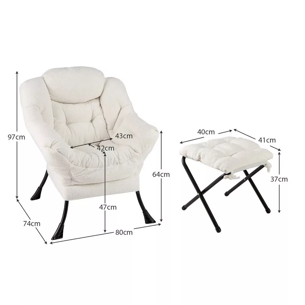 Pokrycie z tkaniny sherpa jest przyjemne w dotyku i nadaje elegancki wygląd, podczas gdy stalowa rama zapewnia stabilność. Wypełnienie z bawełny PP oferuje miękkość, a antypoślizgowe nóżki na dole chronią podłogę przed zarysowaniami.