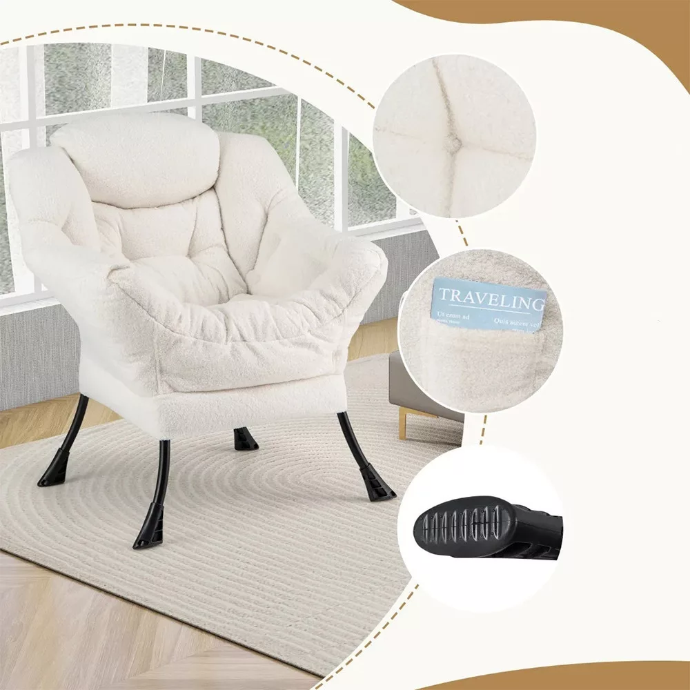 Wyjmowane oparcie sprawia, że relaks jest jeszcze bardziej komfortowy, a boczna kieszonka pozwala na przechowywanie telefonu, książki lub magazynu w zasięgu ręki. Jego czysty design idealnie pasuje do każdego salonu, sypialni lub domowego biura.