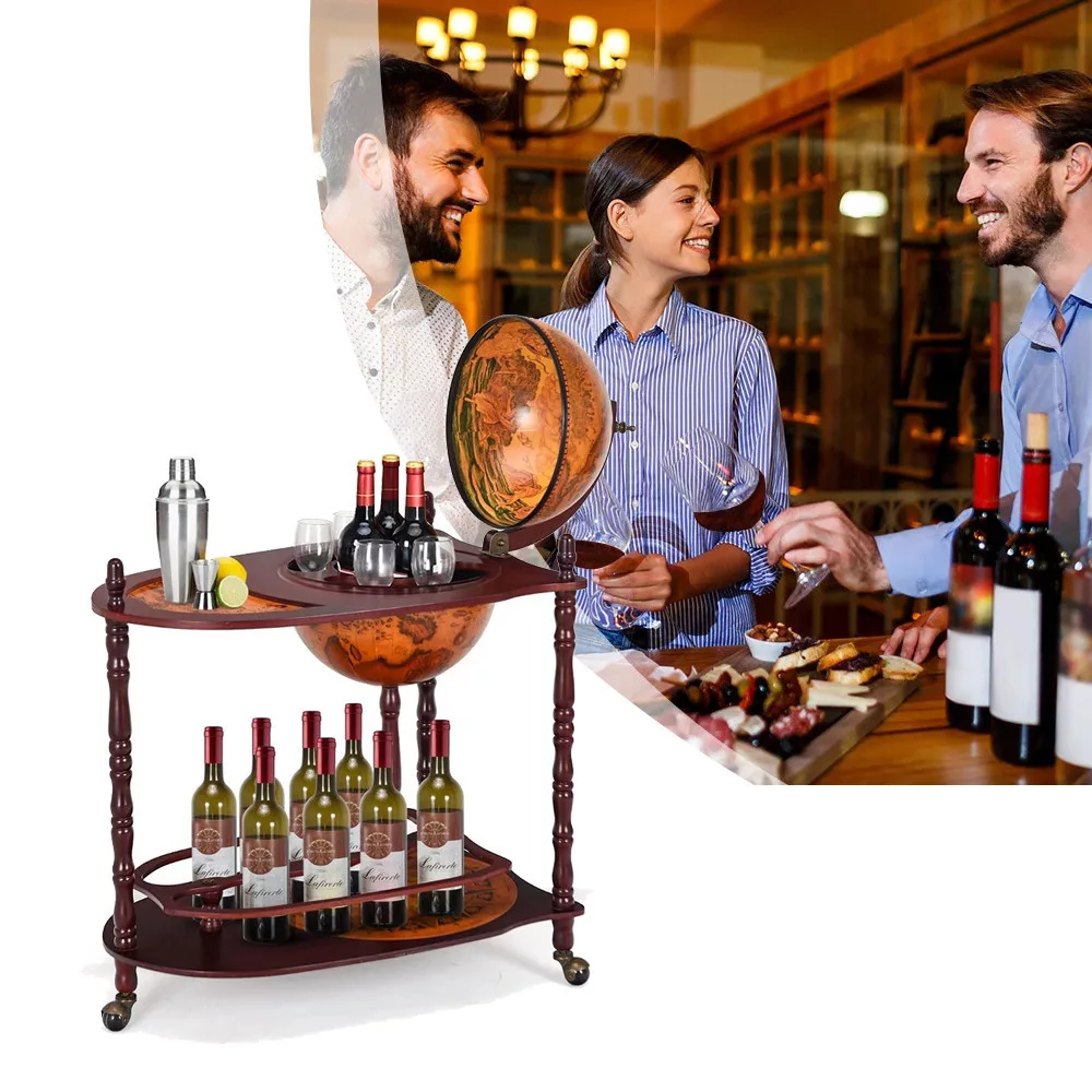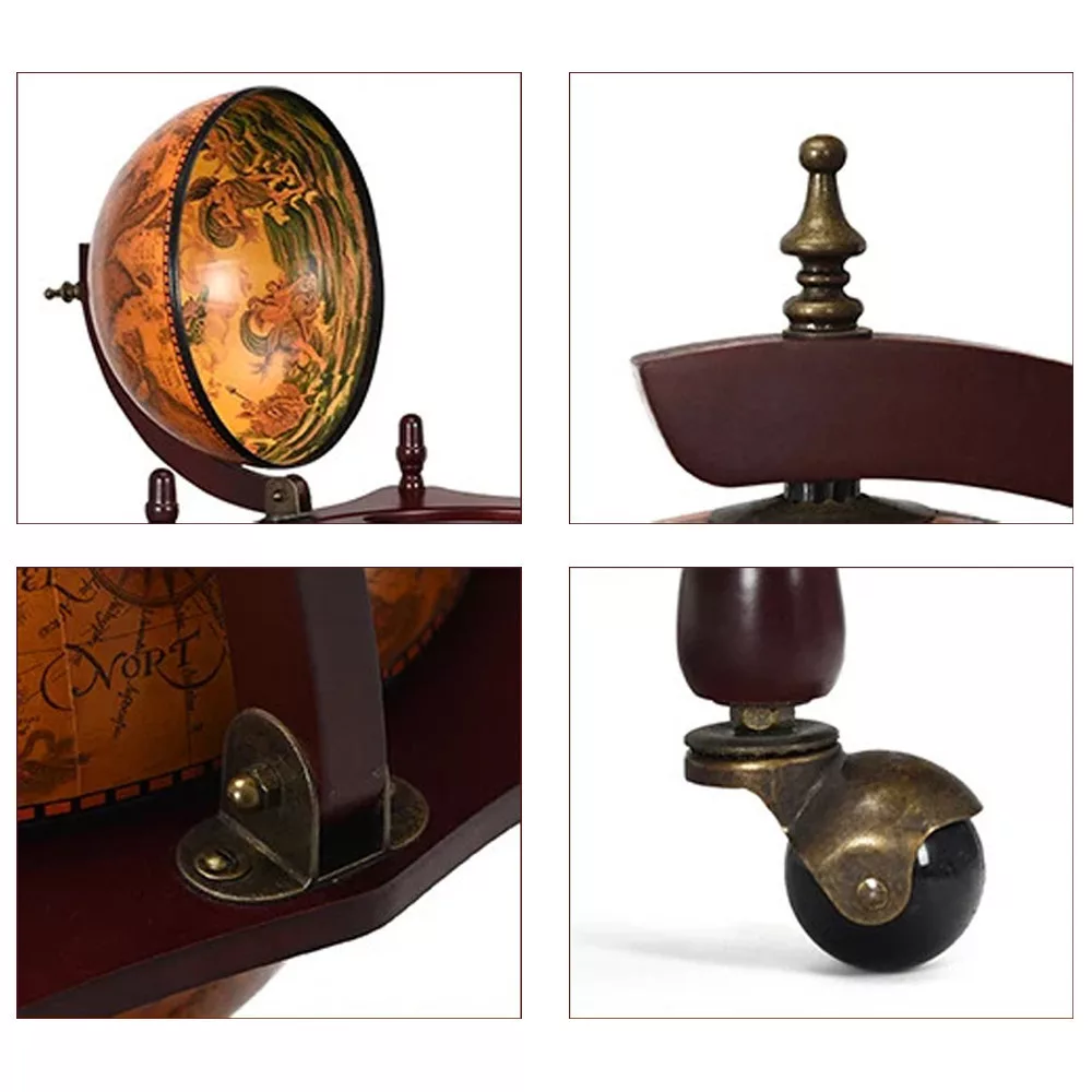 Zewnętrzna część globusa ozdobiona jest klasycznym wzorem mapy, co czyni go zarówno dekoracyjnym, jak i funkcjonalnym. Wnętrze to prawdziwa niespodzianka: zorganizowane miejsce na butelki wina i kieliszki, wszystko w stylowej prezentacji. Mebel, który zaimponuje każdemu gościowi.