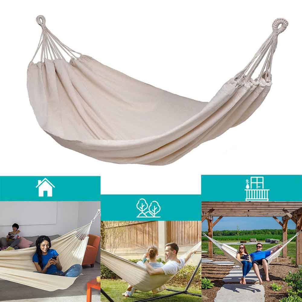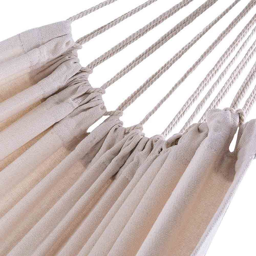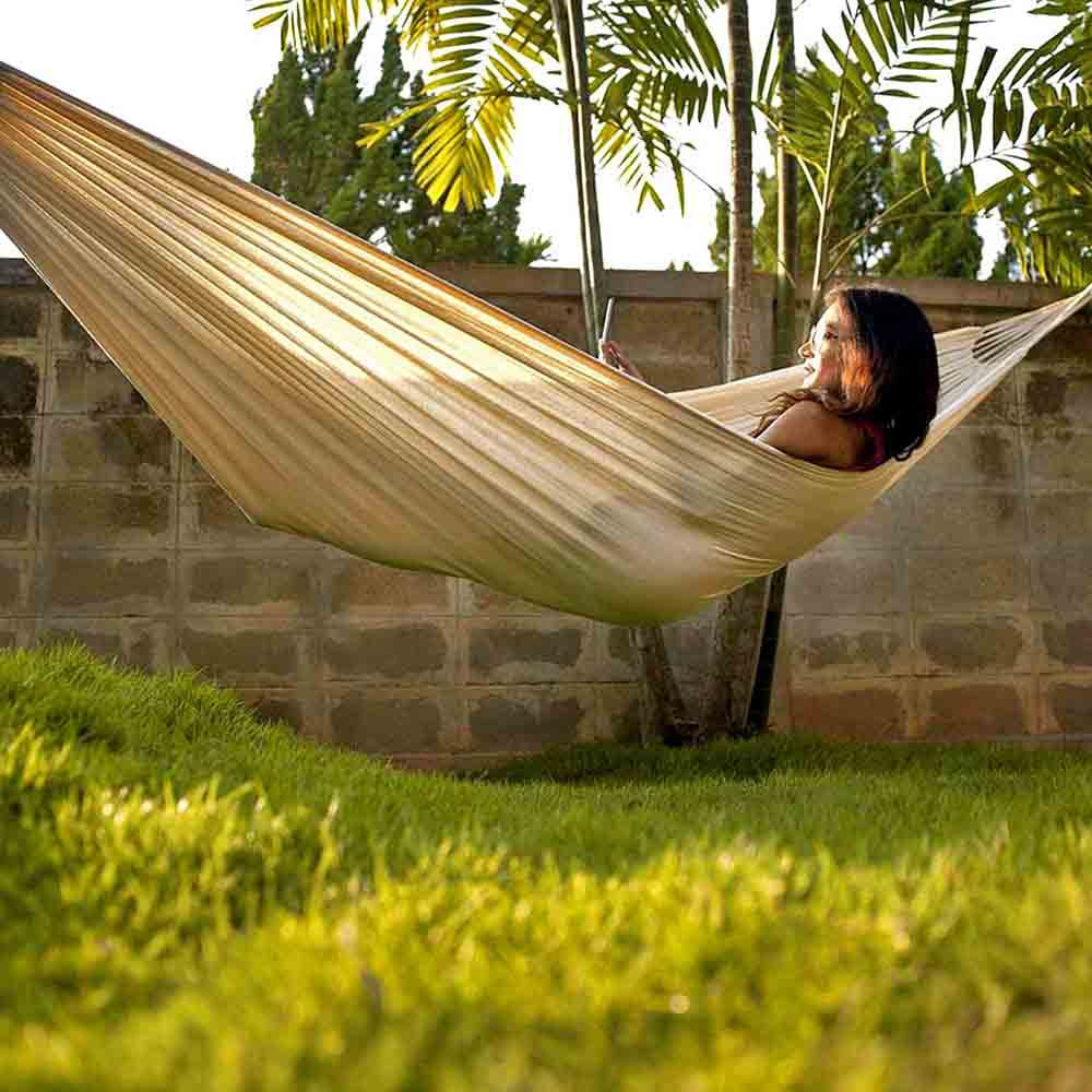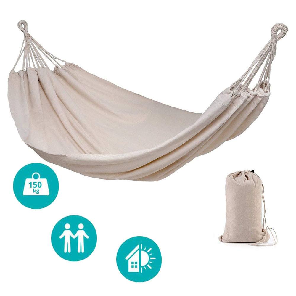 Dwuosobowy hamak to idealny wybór do ogrodu, na taras, a także do użytku wewnętrznego. Stabilnie mocowany do drzewa lub słupa – szybko stworzysz własną strefę relaksu gdziekolwiek jesteś.
