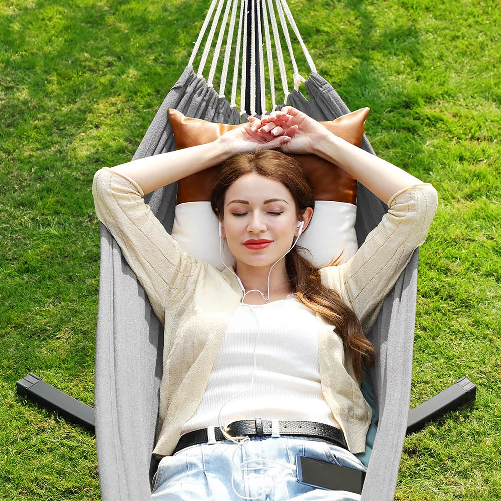 Wyobraź sobie delikatne kołysanie się podczas cieszenia się słońcem lub spokojnym wieczorem w ogrodzie. Ten hamak oferuje idealne warunki do relaksu, niezależnie od tego, czy to cicha popołudniowa chwila, czy wspólny moment wypoczynku.