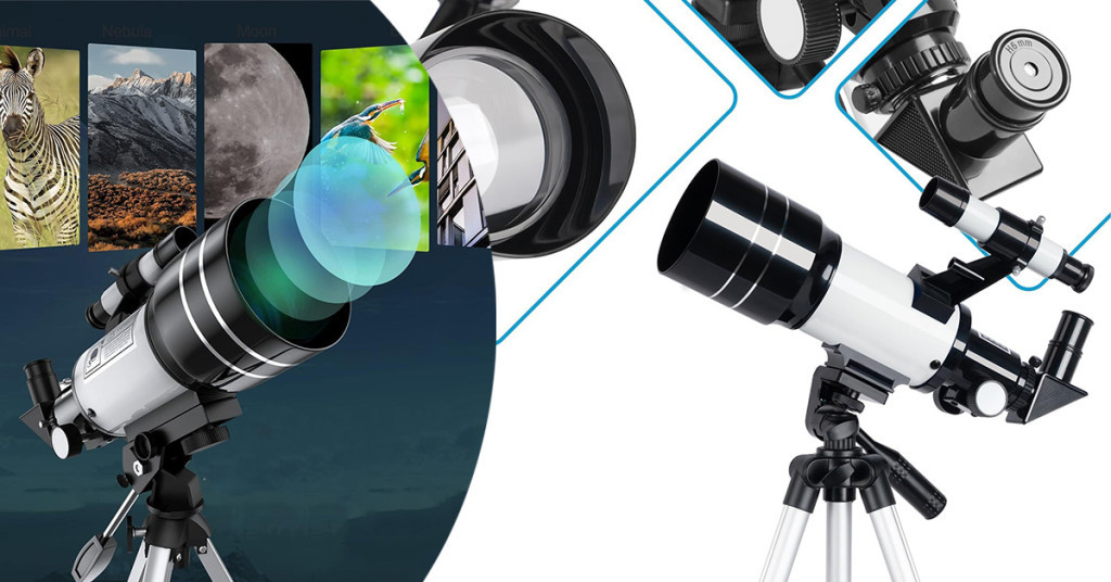 Zestaw zawiera 3 okulari, filtr księżycowy, soczewkę Barlow i lustro Zenit. Powiększenie 70–300 mm i średnica soczewki 100 mm umożliwiają obserwacje pełne detali.
