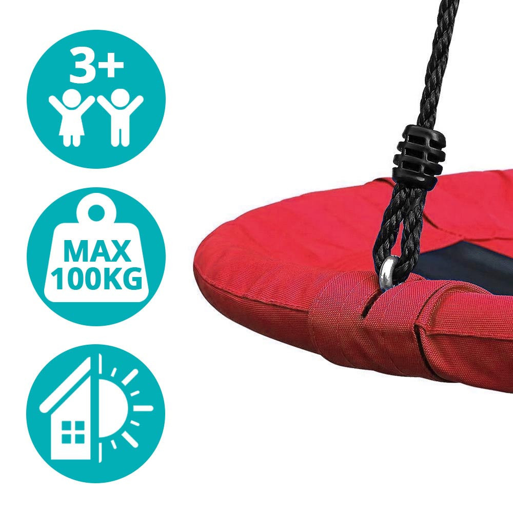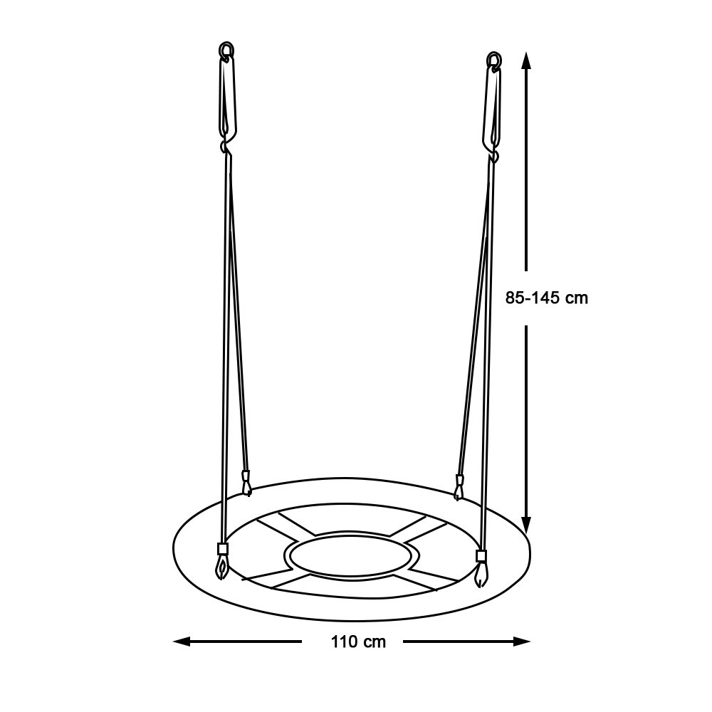 Stalowa rama pokryta została piankową osłoną, co zwiększa bezpieczeństwo użytkowania, nawet dla najmłodszych dzieci. Regulowane liny pozwalają łatwo dostosować wysokość huśtawki do miejsca montażu i indywidualnych potrzeb.