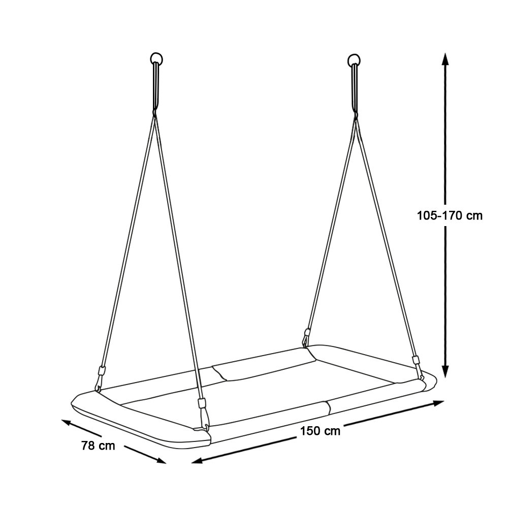 Nie musisz iść na plac zabaw – z tą huśtawką gniazdo możesz cieszyć się radością bujania we własnym ogrodzie lub domu. Rozmiar 150x78 cm zapewnia wygodę nawet kilku dzieciom lub jednej dorosłej osobie.