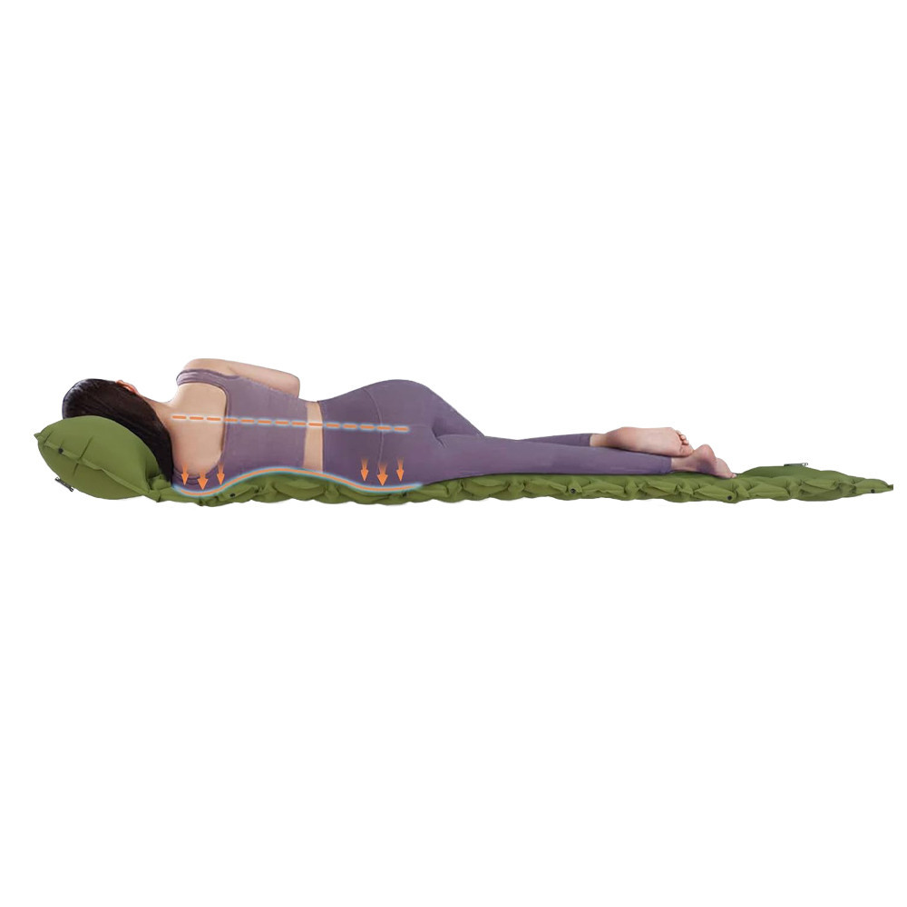 Mobilne łóżko zostało zaprojektowane z myślą o kempingu i pieszych wędrówkach – zapewnia komfortowy wypoczynek w każdych warunkach. Po nadmuchaniu ma 9 cm grubości, izolując od zimnego, nierównego podłoża i gwarantując spokojny sen na zewnątrz.