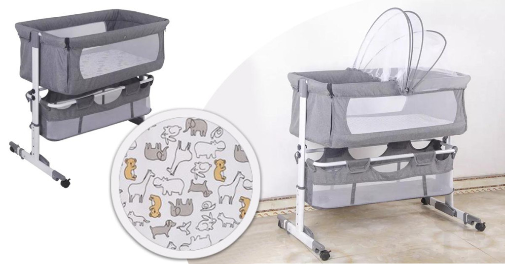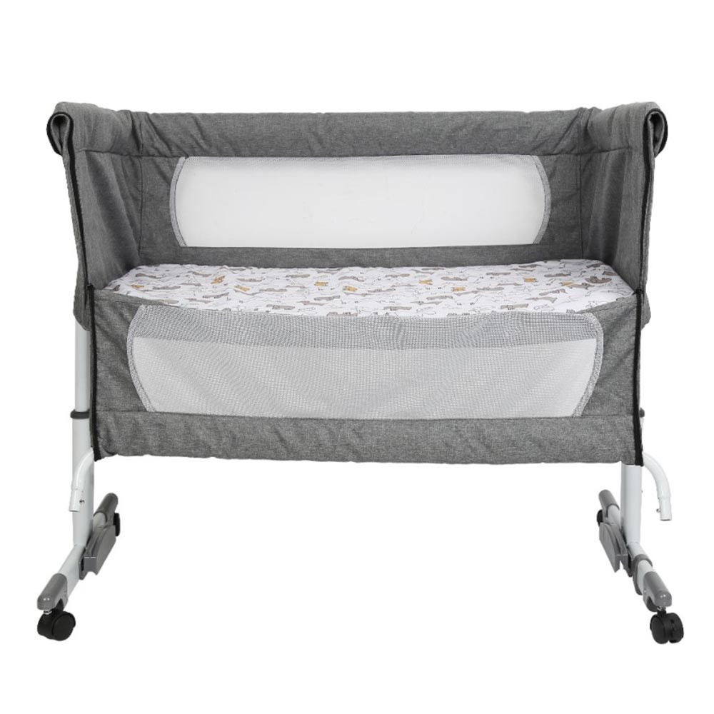 Łóżeczko można ustawić na 4 różnych wysokościach, co pozwala idealnie dopasować je do każdego łóżka. Pasek mocujący zapewnia stabilne przymocowanie, a opuszczany bok ułatwia dostęp do dziecka. Dodatkowo tylne nóżki można rozłożyć, aby umożliwić delikatne kołysanie, które uspokoi maluszka.