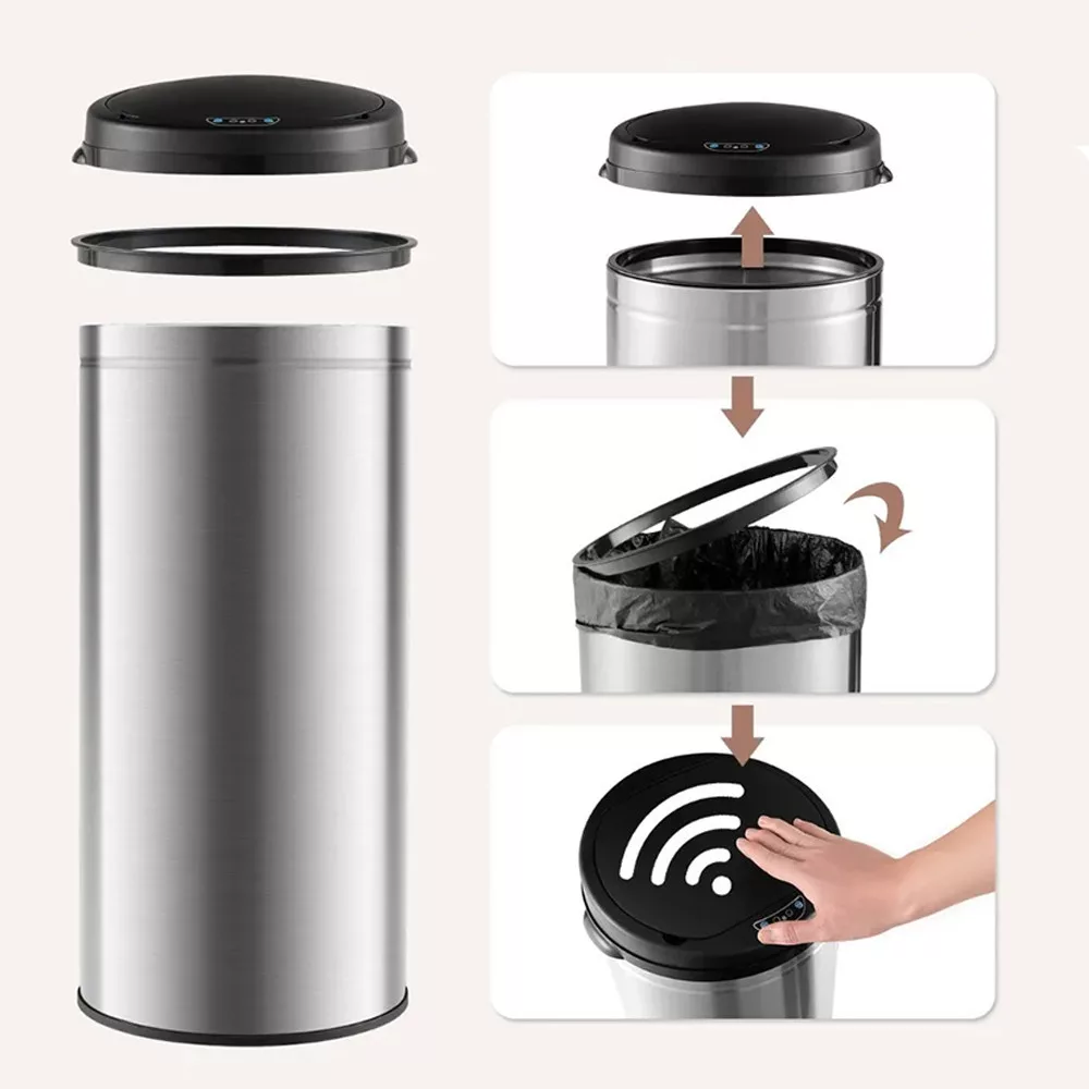 Wbudowany czujnik ruchu automatycznie otwiera pokrywę, gdy wykryje ruch w odległości do 15 cm. Dzięki temu możesz pozbyć się odpadków bez dotykania kosza. Pokrywa zamyka się powoli i cicho po 5 sekundach, zapewniając komfortowe i czyste doświadczenie.