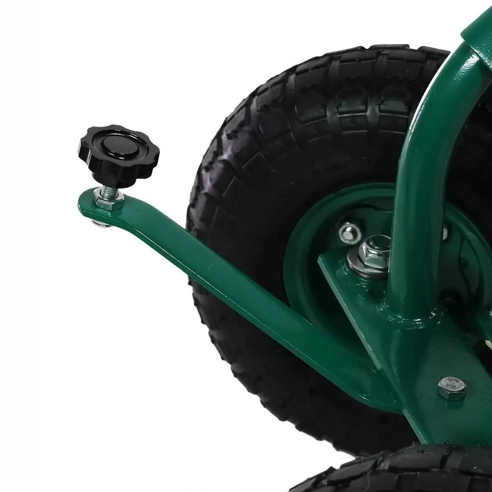 Solidna metalowa rama wytrzymuje obciążenie do 120 kg, zapewniając stabilność i bezpieczeństwo użytkowania. Trwałe koła na łożyskach oraz opony z zaworem samochodowym gwarantują płynność ruchu i stabilność nawet na nierównym podłożu. Doskonałe nie tylko do prac ogrodowych, ale także do napraw czy prac w garażu.