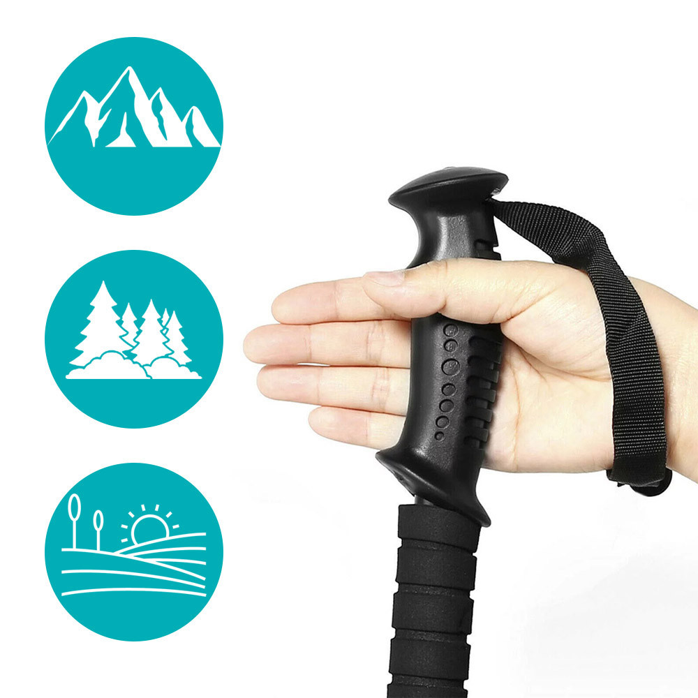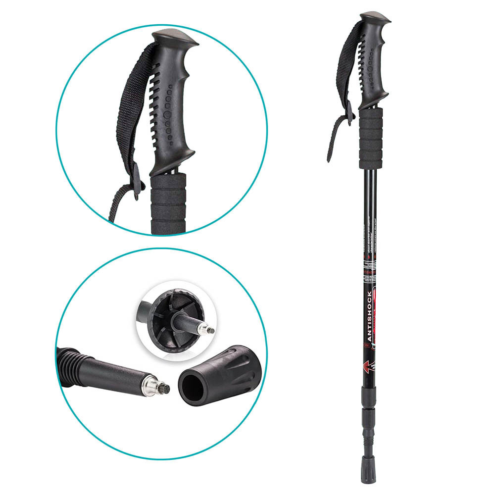 Składana konstrukcja teleskopowa i dołączony pokrowiec ułatwiają transport. Wymienne gumowe końcówki dostosowują się do różnych warunków pogodowych i terenowych – błota, śniegu czy kamieni.