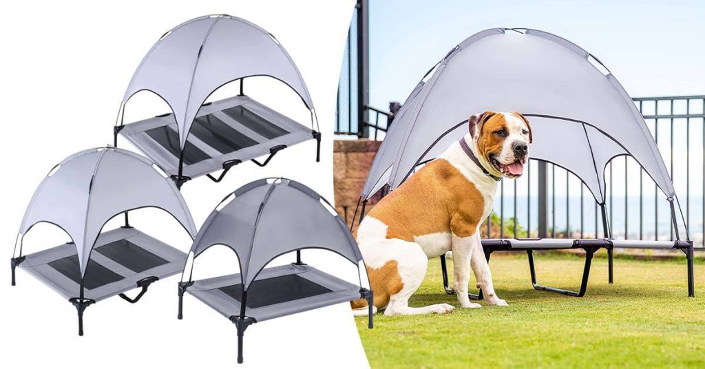 Wbudowany daszek zapewnia zwierzakowi cień, dzięki czemu może odpoczywać w komfortowych warunkach nawet w największe upały. Osłona przeciwsłoneczna zmniejsza ryzyko przegrzania, co jest szczególnie ważne dla zwierząt o krótkiej lub jasnej sierści.