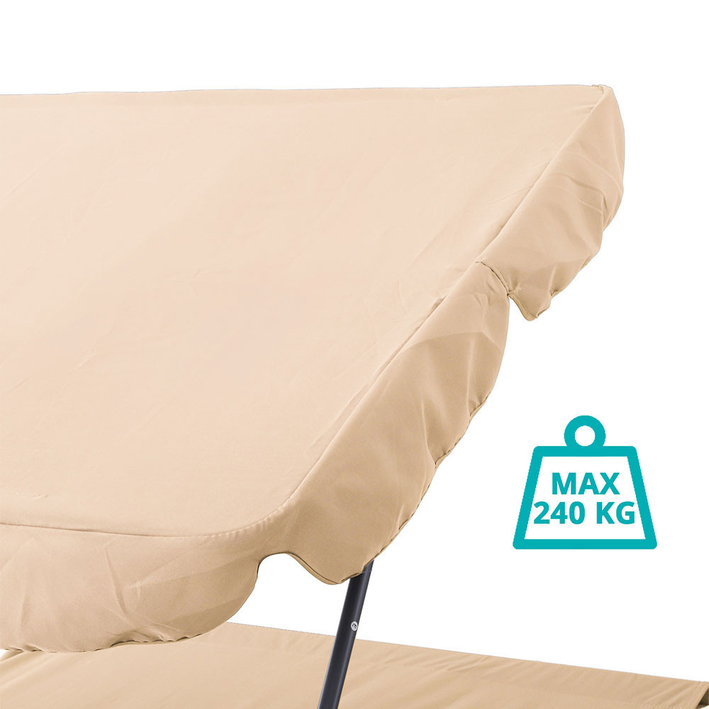 Dzięki regulowanemu daszkowi łatwo dostosujesz, czy chcesz się opalać, czy odpoczywać w cieniu. Dwie poduszki w zestawie zwiększają komfort podczas dłuższych chwil relaksu.