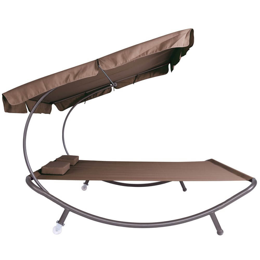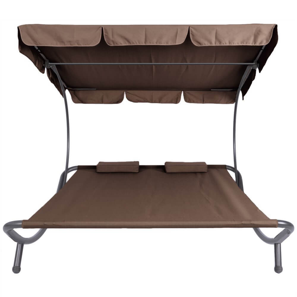 Leżanka ogrodowa z daszkiem, 2 osobowa-ciemnobrązowa