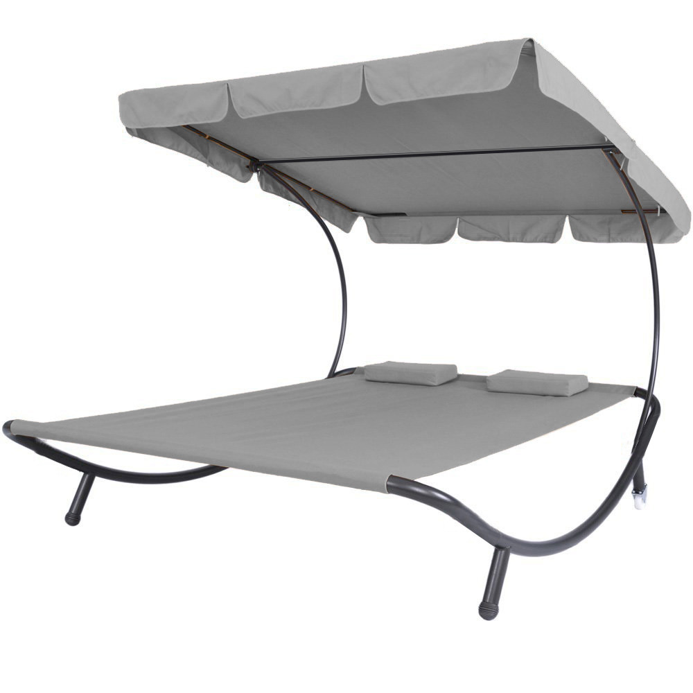 Leżanka ogrodowa z daszkiem, 2 osobowa-szara