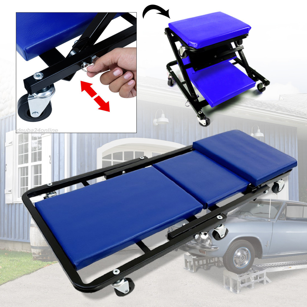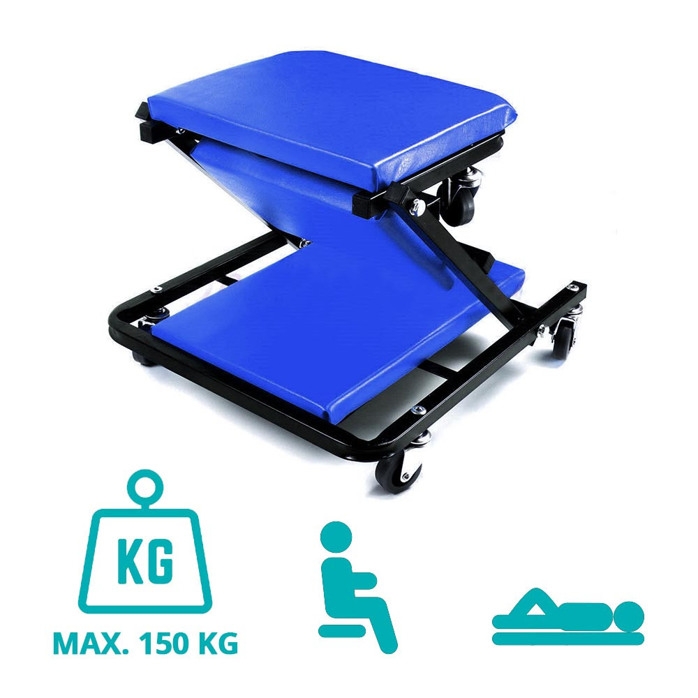 To krzesło warsztatowe można złożyć w unikalny kształt litery „Z”, co pozwala na wykorzystanie go zarówno jako wygodne krzesło, jak i praktyczną leżankę. Szybka i intuicyjna transformacja oszczędza czas podczas pracy.