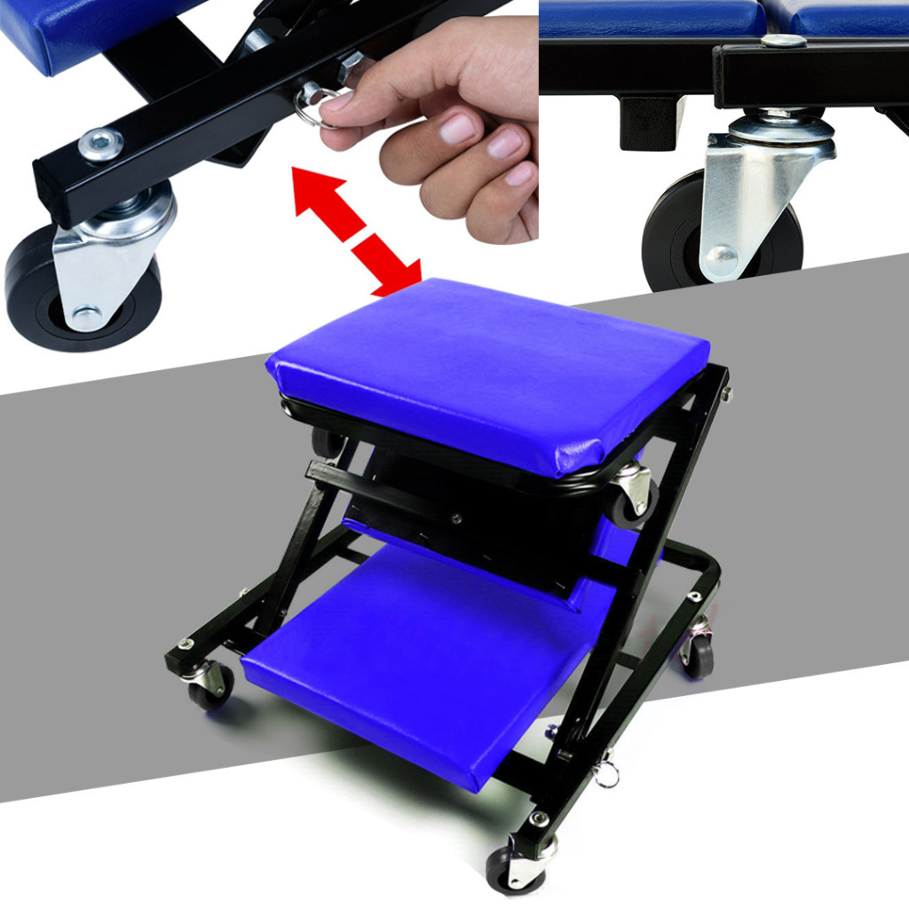 Grubo wyściełana powierzchnia krzesła zapewnia wygodę nawet podczas długotrwałych prac. Ergonomiczny design minimalizuje ryzyko bólu pleców, co czyni go idealnym wyborem zarówno do domowego majsterkowania, jak i profesjonalnych prac w warsztacie.