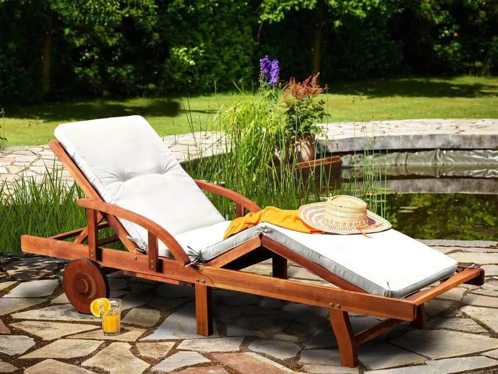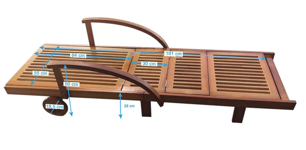 Jeśli chcesz stworzyć w swoim ogrodzie prawdziwą śródziemnomorską atmosferę, wybierz regulowane drewniane łóżko wypoczynkowe! Postawiony na trawie na podwórku lub przy basenie wygląda równie świetnie. Dzięki specjalnej konstrukcji zarówno oparcie, jak i siedzisko są regulowane. Wybierz najwygodniejszy dla siebie kąt i opalaj się, odpoczywaj, czytaj, a nawet śpij na świeżym powietrzu. Dzięki swojemu materiałowi będzie naturalnym i stylowym dodatkiem do Twojego ogrodu.