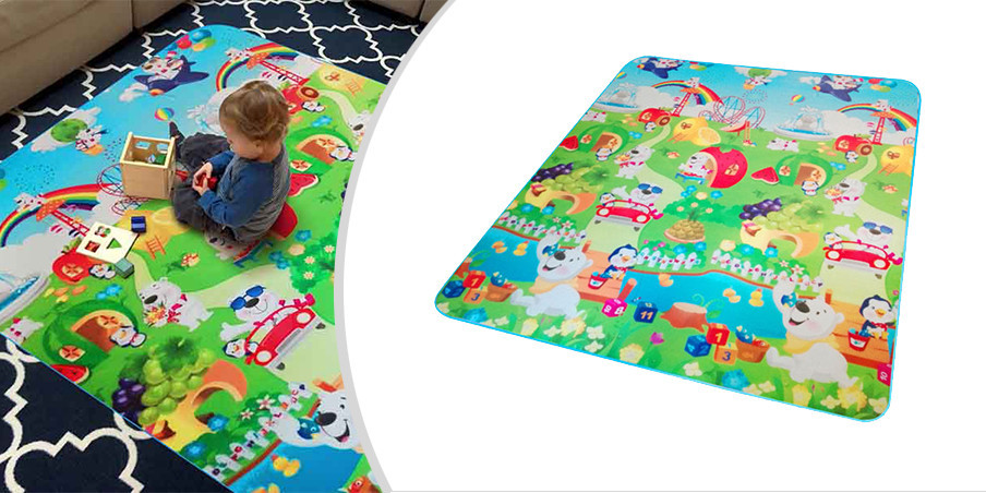 Mata ozdobiona kolorowymi postaciami i wzorami wspomaga naukę rozpoznawania kształtów, zwierząt i kolorów. Żywe ilustracje stymulują rozwój percepcji wzrokowej, kreatywność oraz koordynację ruchową dziecka. To idealne miejsce zarówno do raczkowania i pierwszych kroków, jak i do twórczej zabawy dla starszych dzieci.