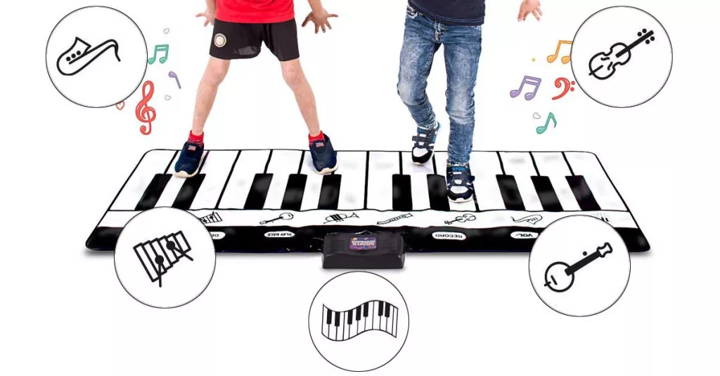 Gigantyczna mata do gry na pianinie zapewnia nie tylko świetną zabawę, ale także rozwija wrażliwość muzyczną. Dzieci podczas zabawy mogą poznawać dźwięki różnych instrumentów, jednocześnie ćwicząc kreatywność i poczucie rytmu.
