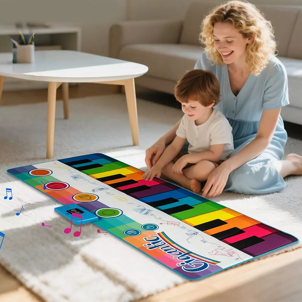 Kolorowa mata taneczna z klawiszami pianina pozwala dzieciom tworzyć muzykę podczas ruchu. Gra zachęca do aktywnego uczestnictwa i kreatywnej ekspresji.