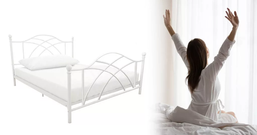 Solidna metalowa rama łóżka zapewnia trwałość i stabilność, a dodatkowe wzmocnienie środkowe zwiększa nośność konstrukcji, co przekłada się na spokojny i komfortowy sen.