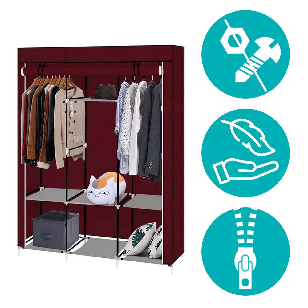 Mobilna szafa do ubrań 130x45x170 cm-bordowa