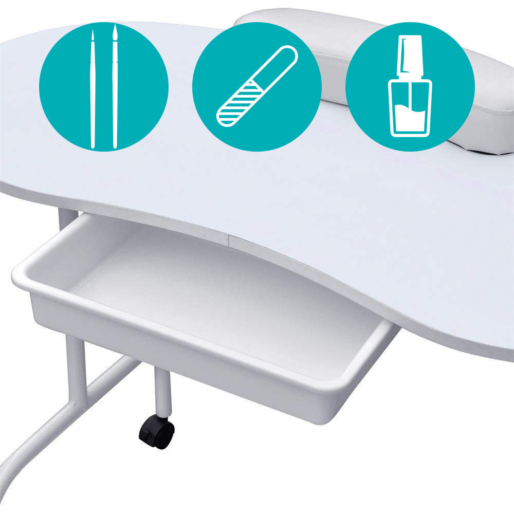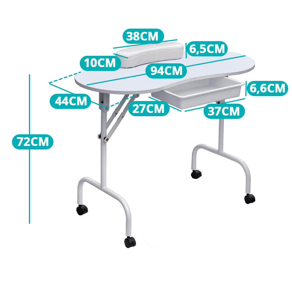 Przenośny stół do manicure z szufladą to idealne rozwiązanie do salonu lub pracy u klienta. Składane nogi i wodoodporna torba umożliwiają łatwy transport i oszczędność miejsca.