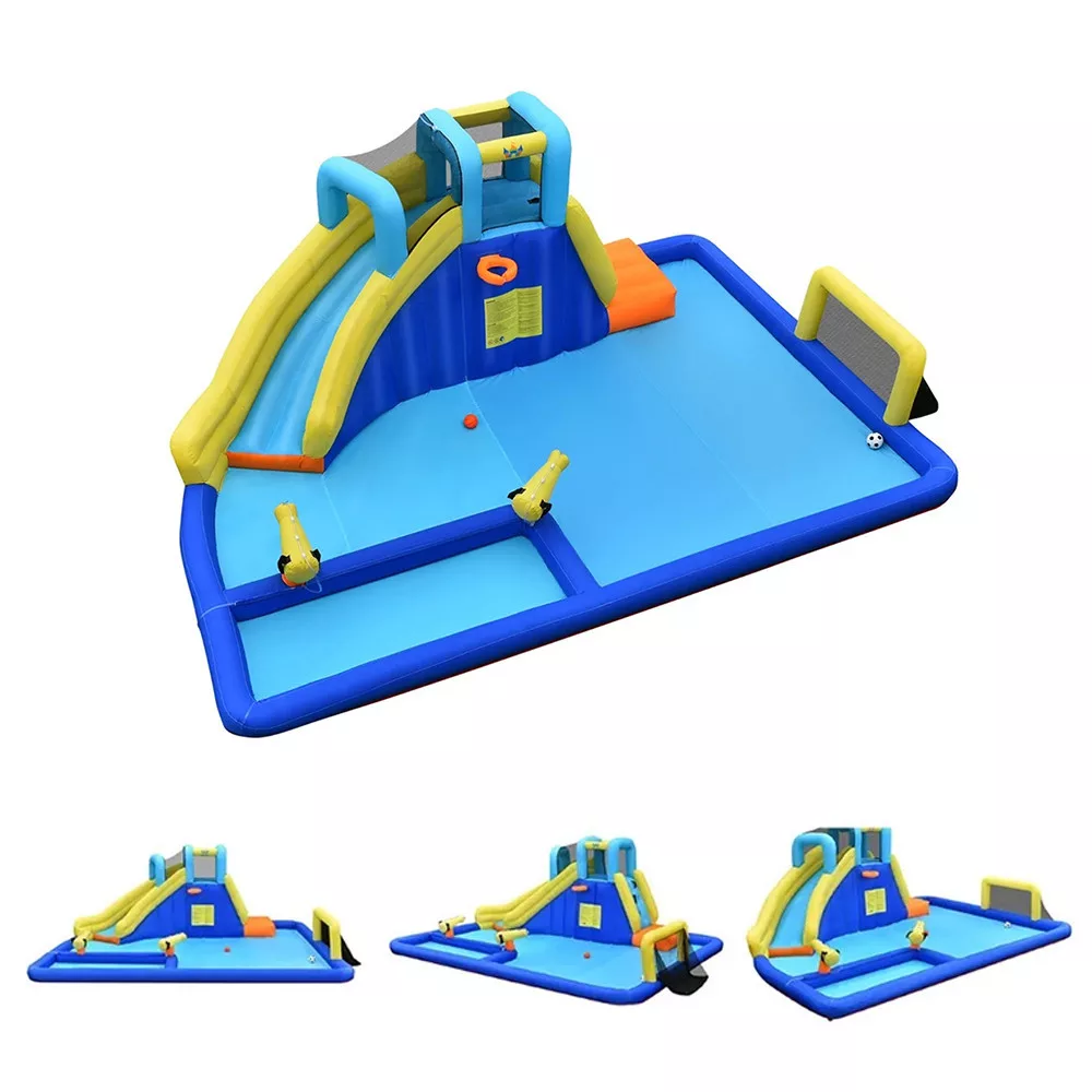 W zestawie znajduje się wszystko, co potrzebne do zabawy: nadmuchiwane piłki, pompka ręczna, system węży wodnych, kotwy, łatki naprawcze i torba transportowa. Oznacza to, że nie będziesz musiał kupować dodatkowych narzędzi do konfiguracji i użytkowania – z wyjątkiem dmuchawy, którą należy zakupić osobno.