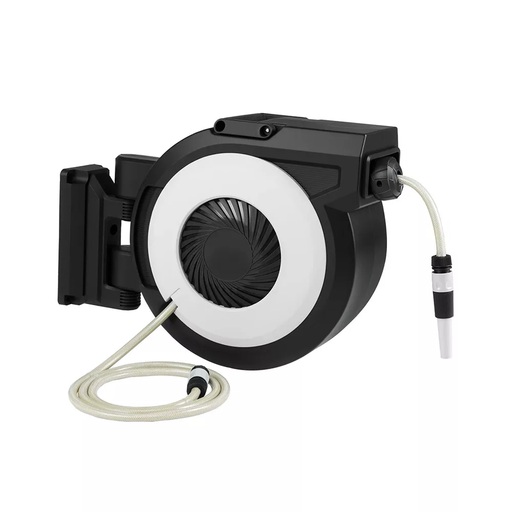 Wąż blokuje się zatrzaskiem, więc nie cofa się podczas pracy. Po zakończeniu, delikatne pociągnięcie powoduje równomierne zwijanie, a rolki pomagają delikatnie wciągnąć wąż. Dzięki temu otoczenie pozostaje czystsze, a sprzątanie zajmuje mniej czasu.