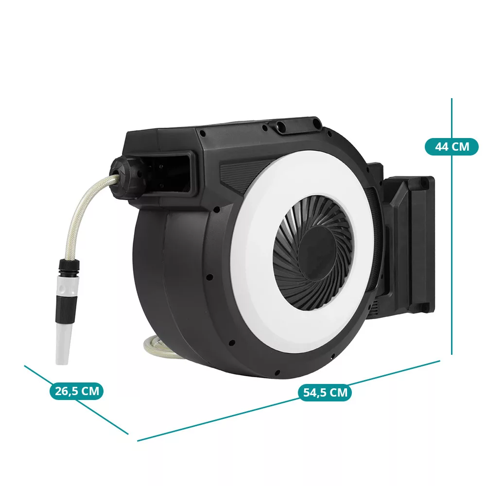 - 1 szt. naścienny zwijany zraszacz z wężem