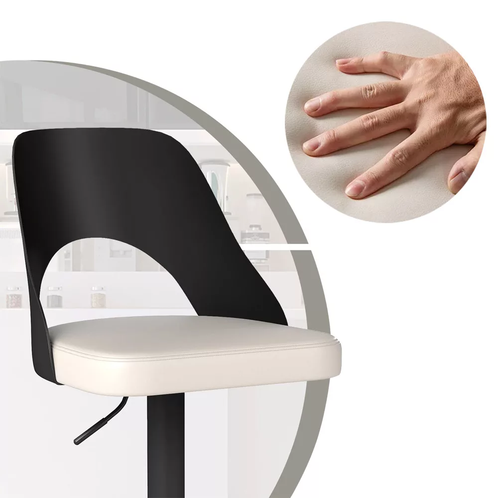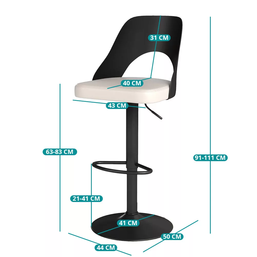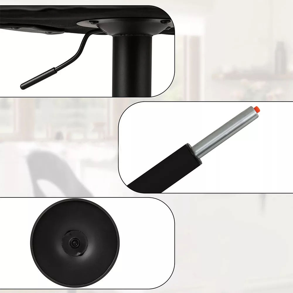 Wysokość łatwo dopasować do własnych potrzeb, a obrót o 360° jest praktyczny podczas rozmowy lub łatwiejszego wsiadania i wysiadania. Stabilna podstawa z gumową obręczą chroni podłogę i pomaga utrzymać krzesło na miejscu.