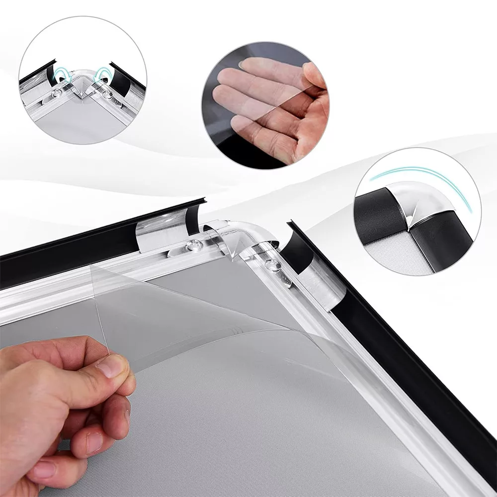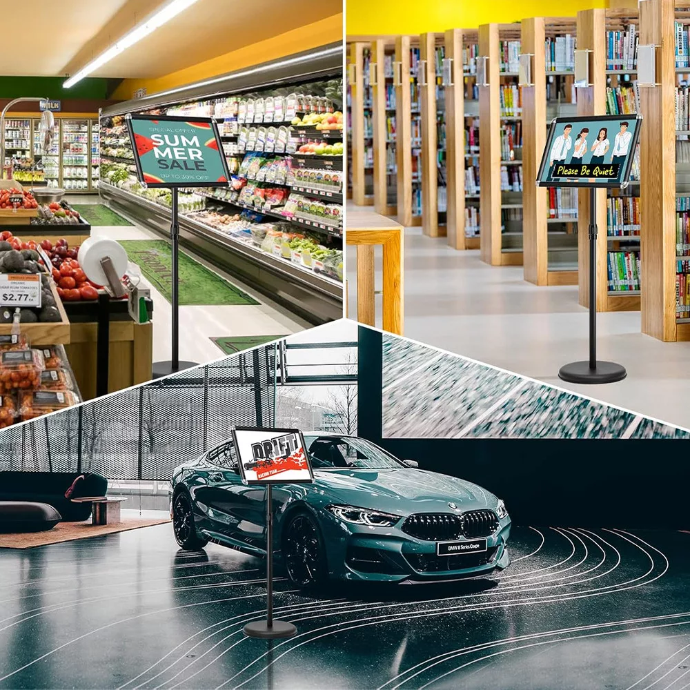 Stojak jest prosty w montażu, a plakaty można szybko wymieniać dzięki ramie z systemem lift-open. Ochronna folia chroni zawartość przed kurzem i wilgocią, zachowując profesjonalny wygląd przez długi czas.