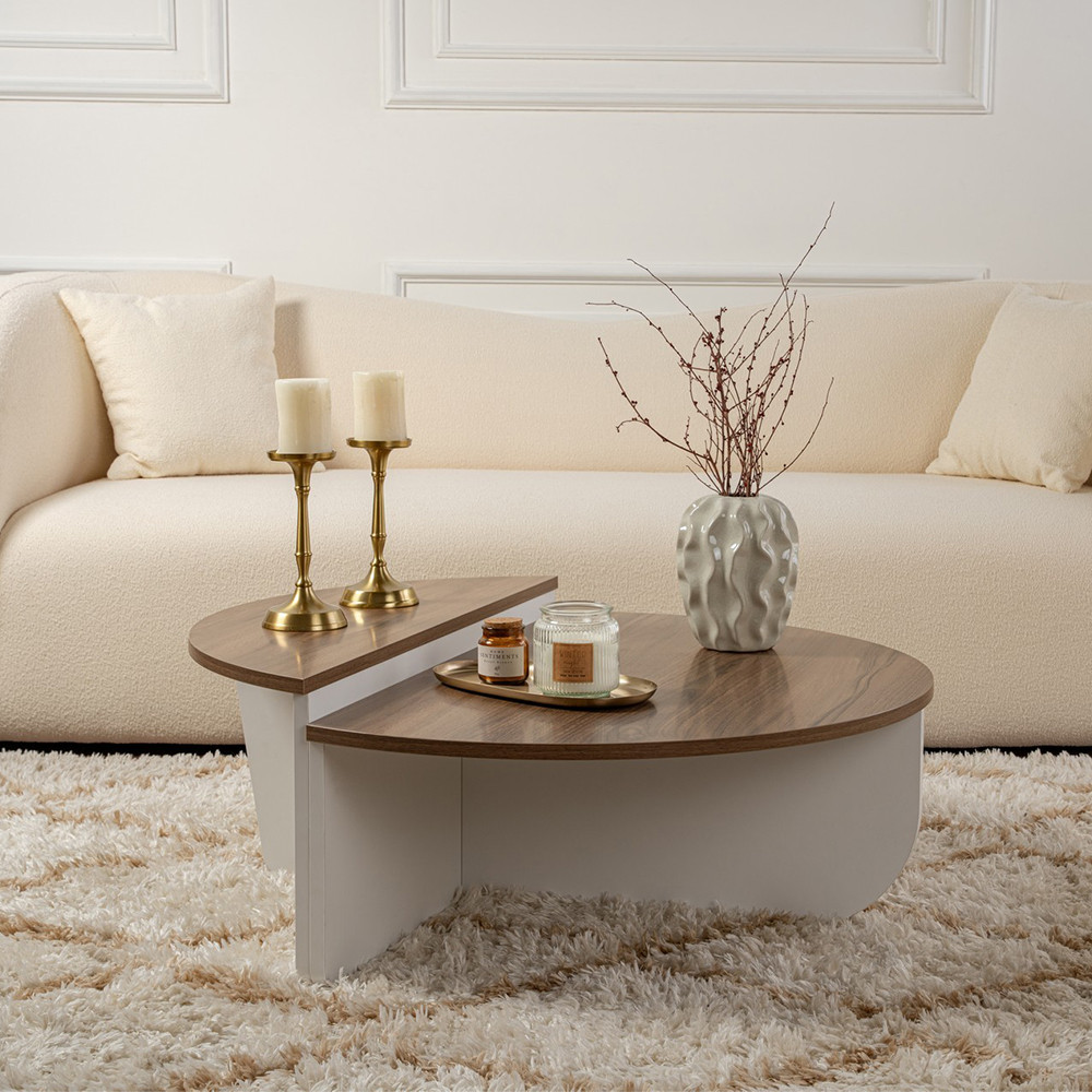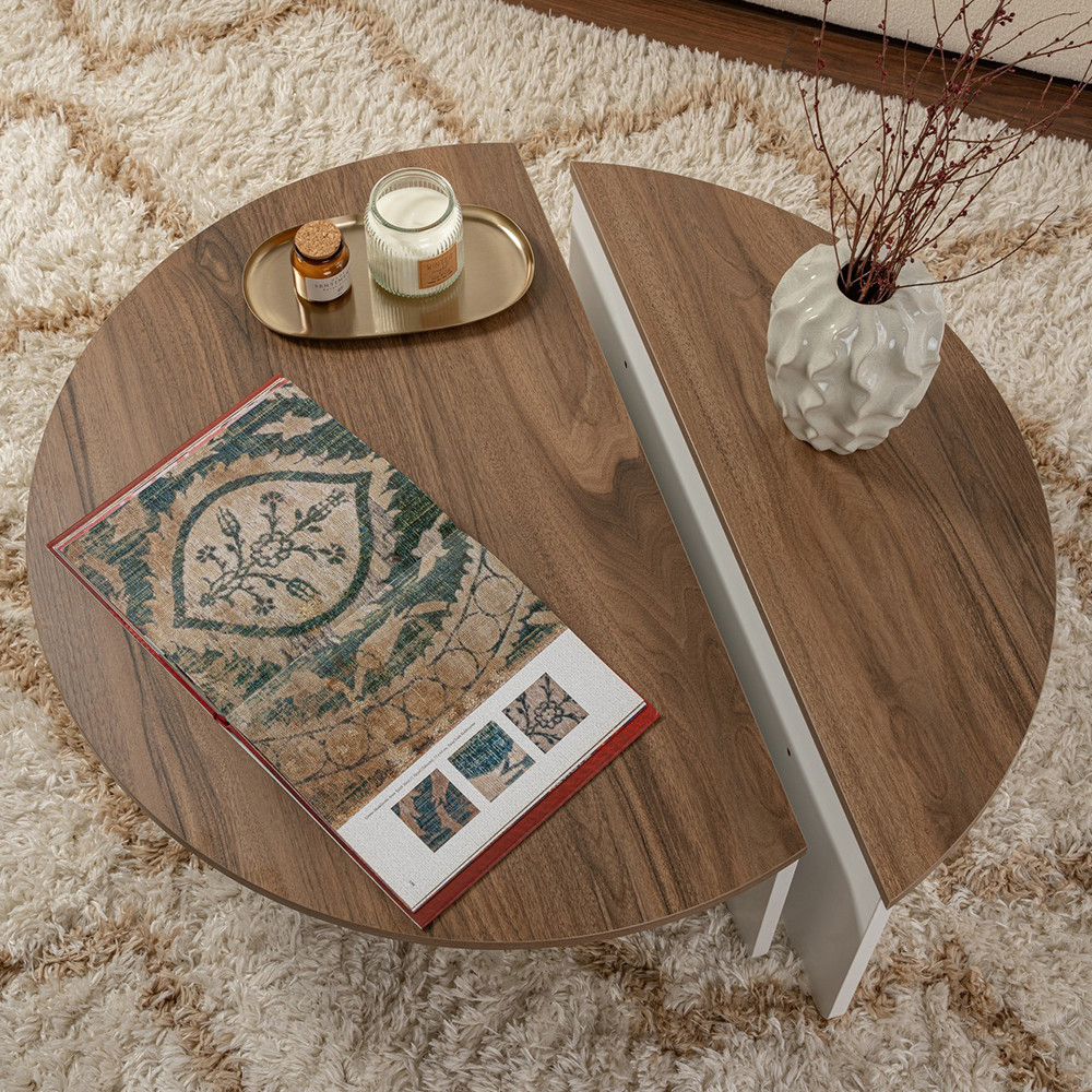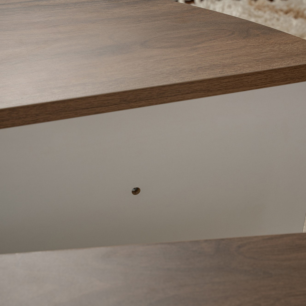 Powierzchnia w efekcie orzecha tworzy przytulną atmosferę, uzupełnioną świeżym, nowoczesnym charakterem białych elementów. Łatwo łączy się z innymi meblami, co ułatwia integrację z istniejącym wnętrzem.