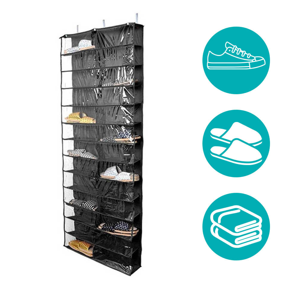Dzięki haczykom montażowym możesz szybko zawiesić organizer na drzwiach – bez wiercenia i narzędzi. Materiał jest łatwy do utrzymania w czystości, co zapewnia higieniczne przechowywanie butów na dłużej.